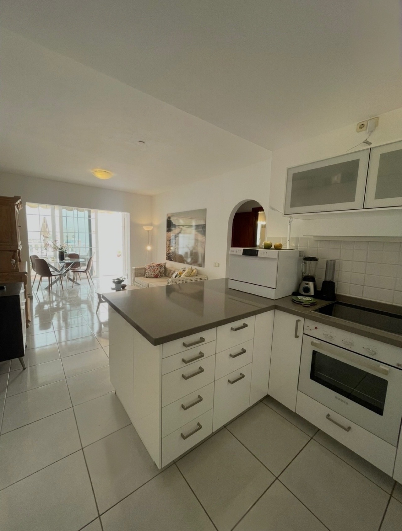 – Åpen stue/kjøkkenløsning med sofakrok, liten spiseplass og utgang til stor terrasse med flott havutsikt