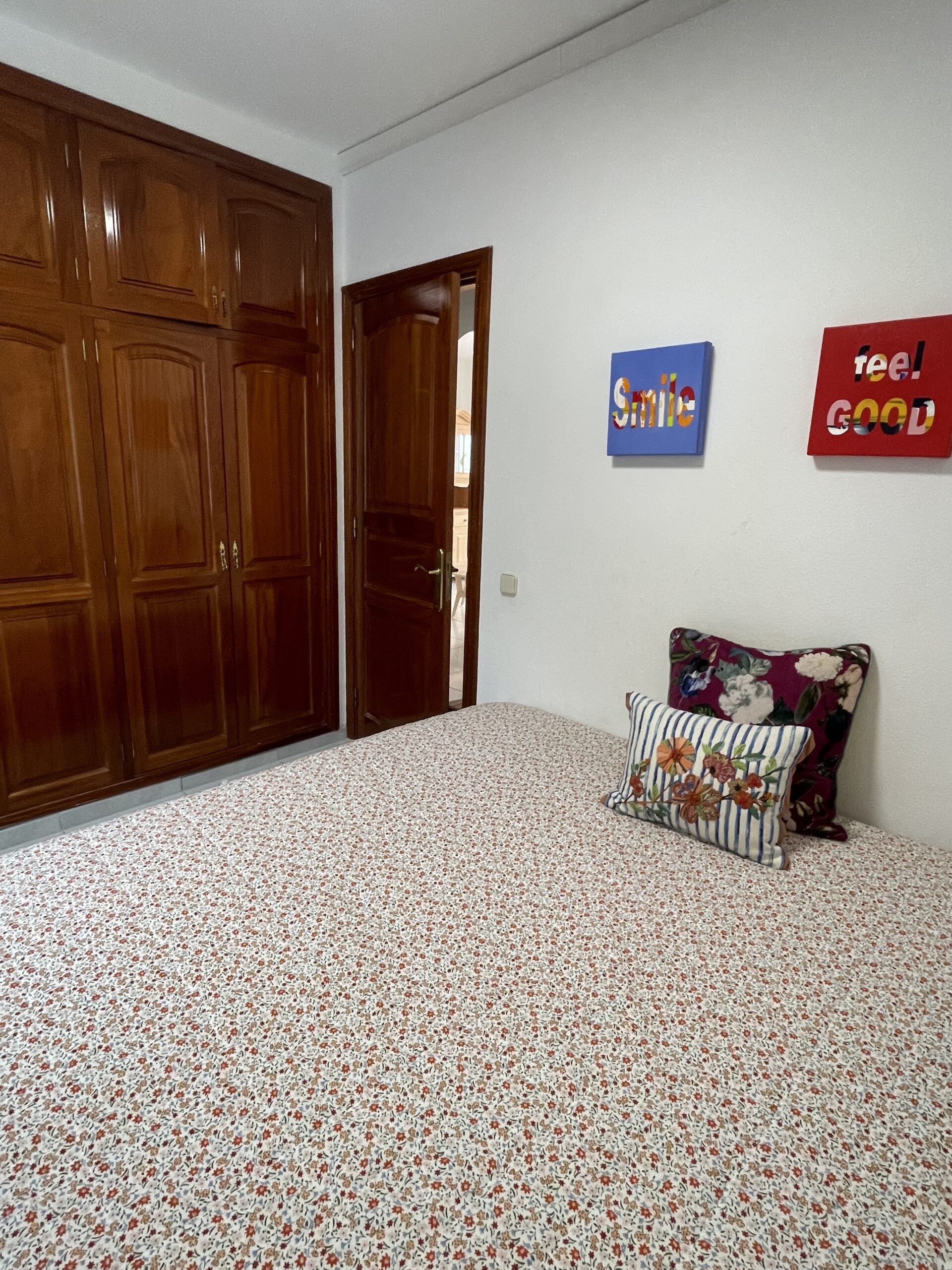 – 2 soverom: 1 hovedsoverom med dobbeltseng og garderobeskap, og 1 mindre soverom med to enkeltsenger og garderobeskap