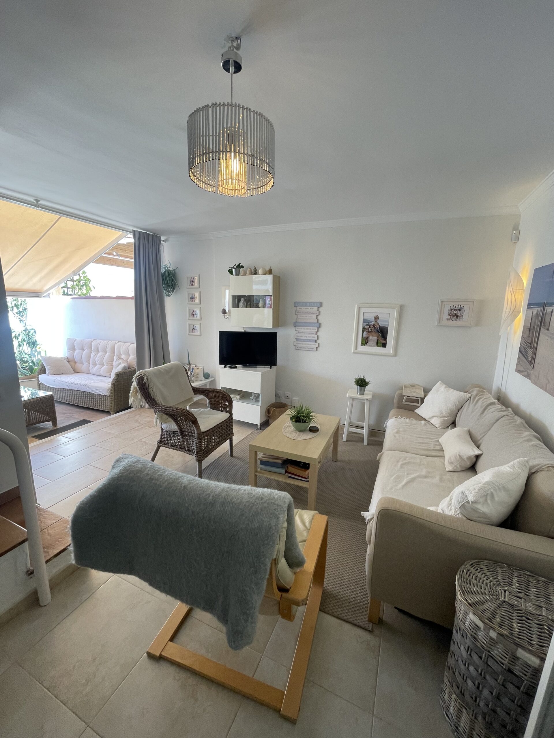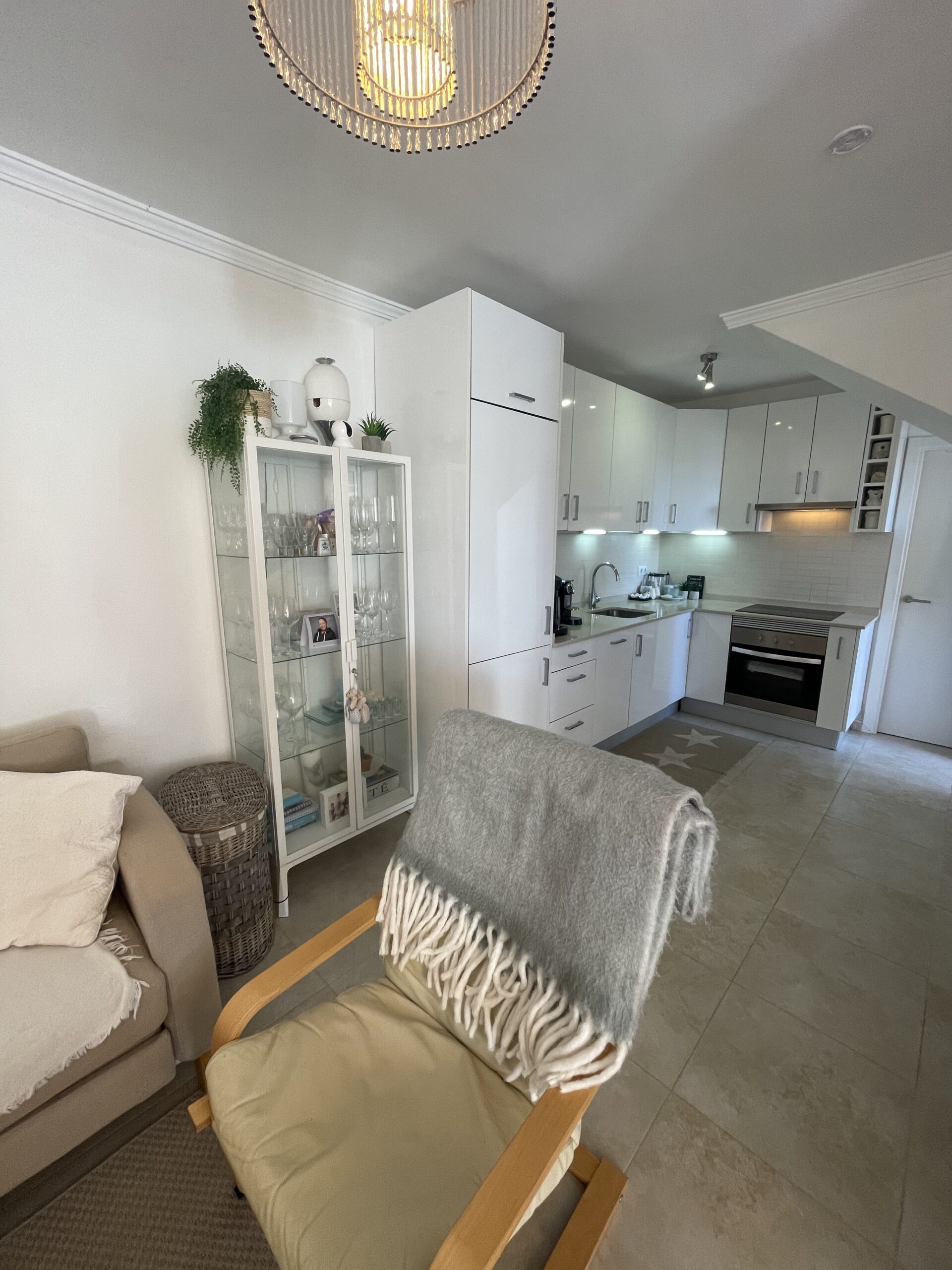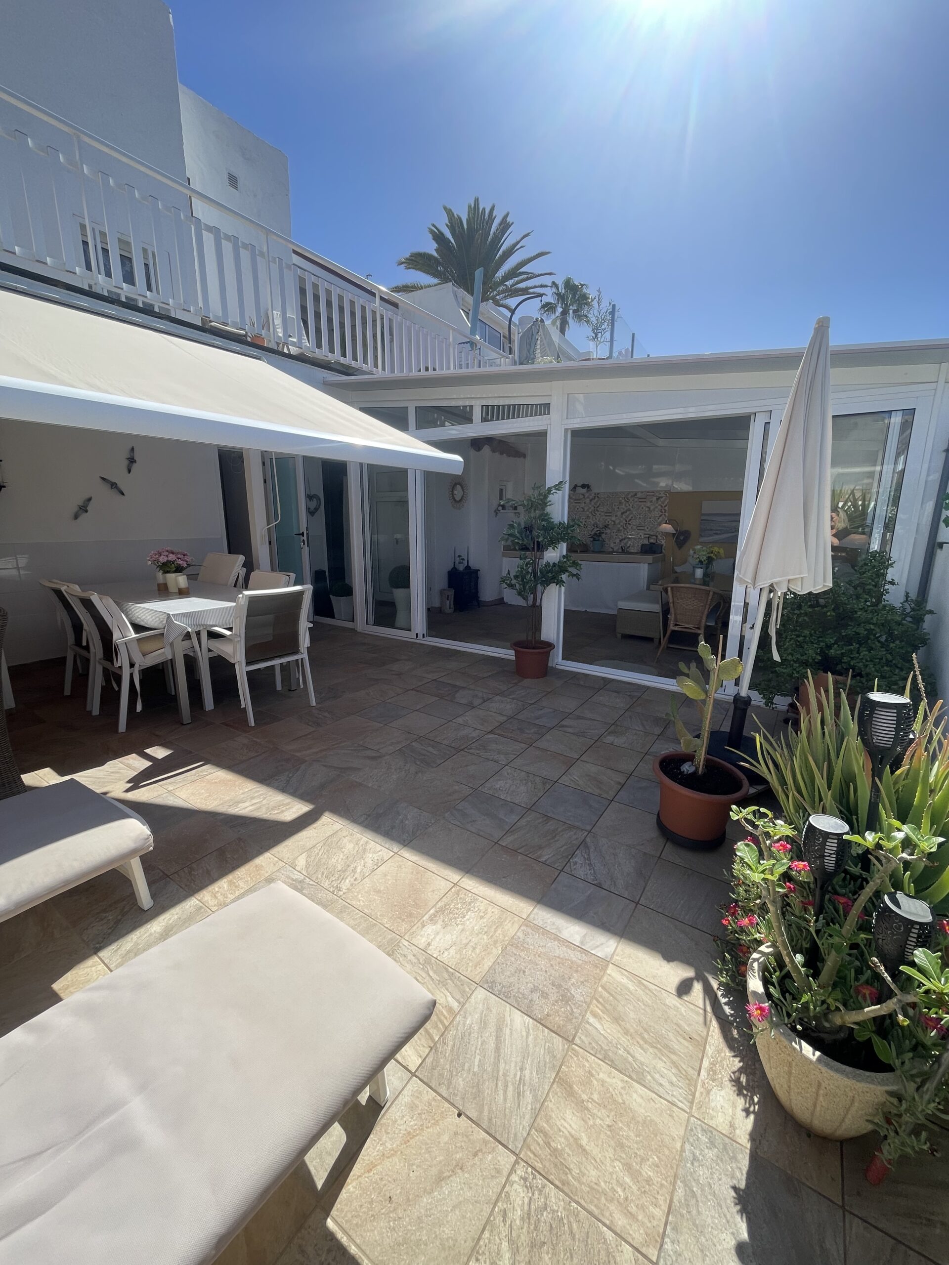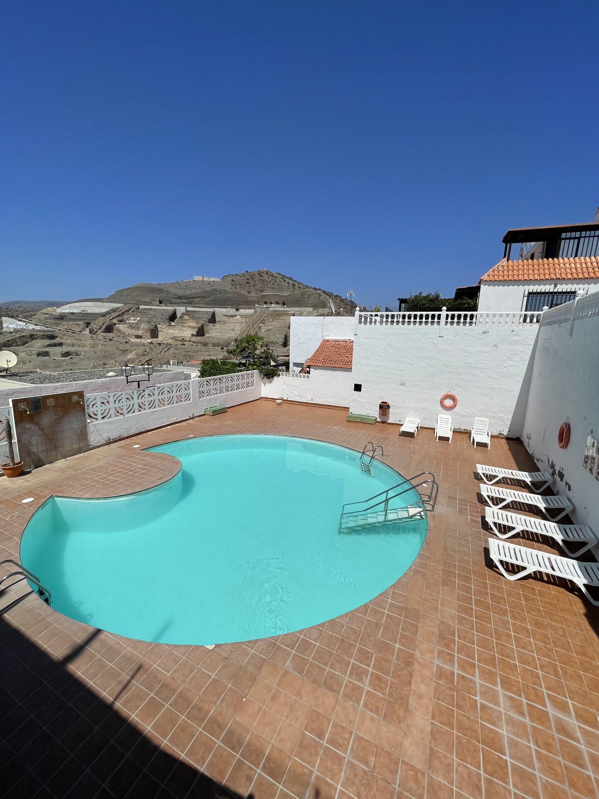 Lys og lekker rekkehusleilighet over to etasjer med flott beliggende i det populære Los Caideros-området, rett bak Anfi Del Mar-anlegget mellom Arguineguin og Puerto Rico.