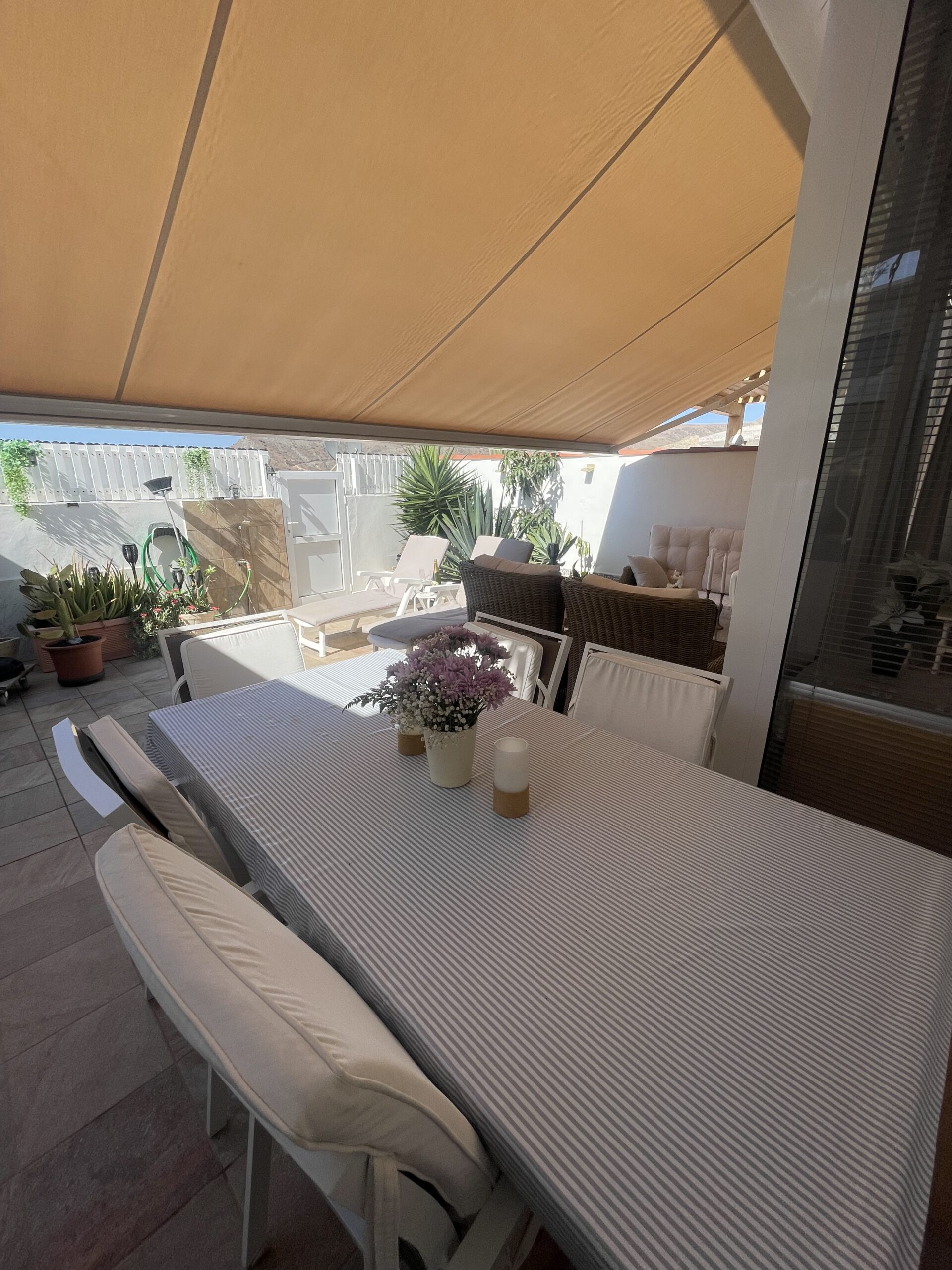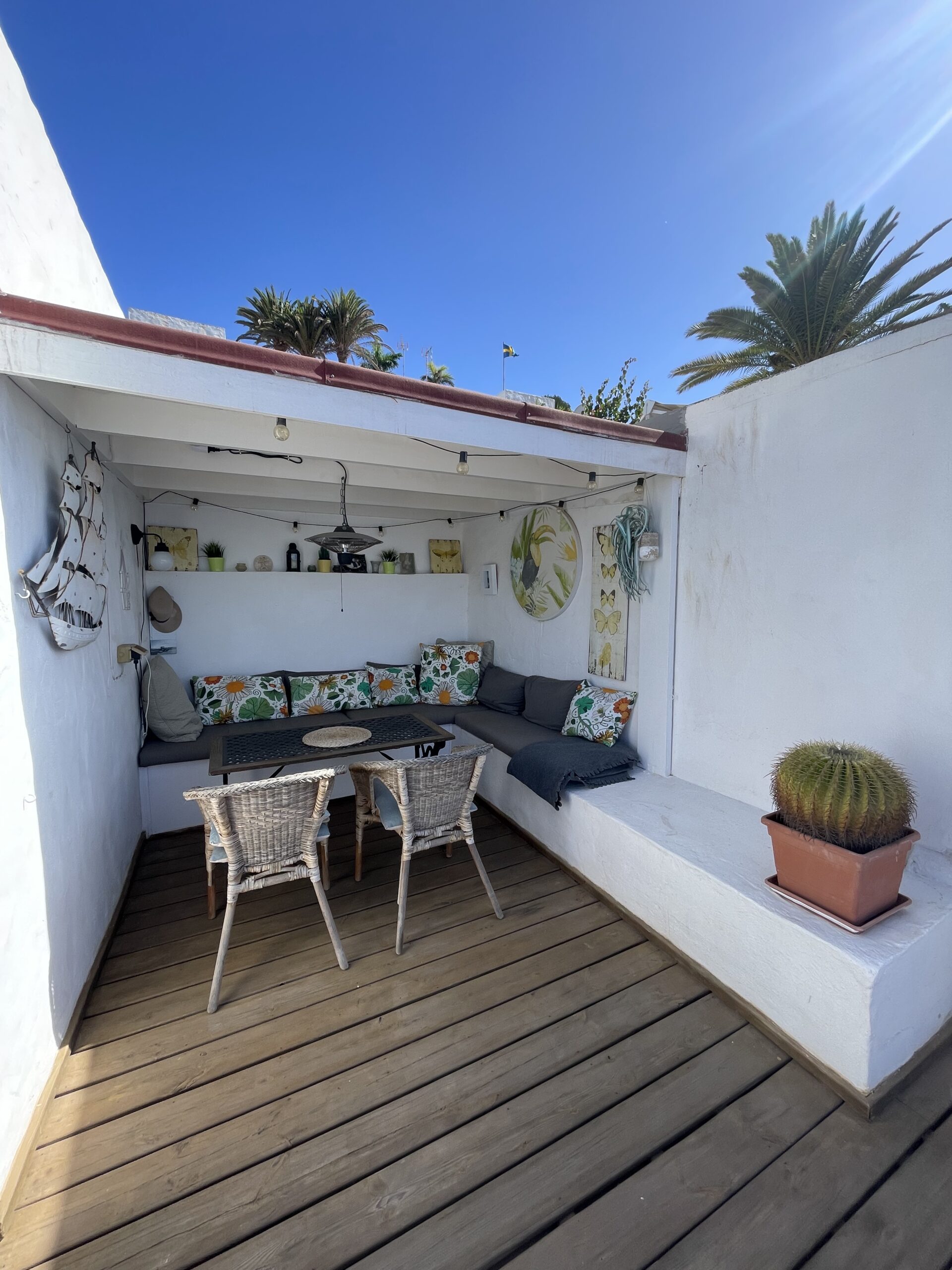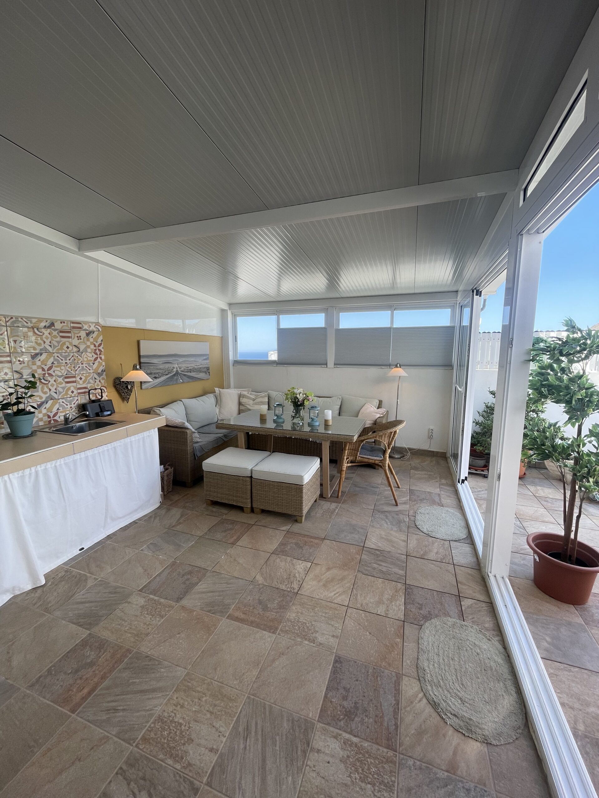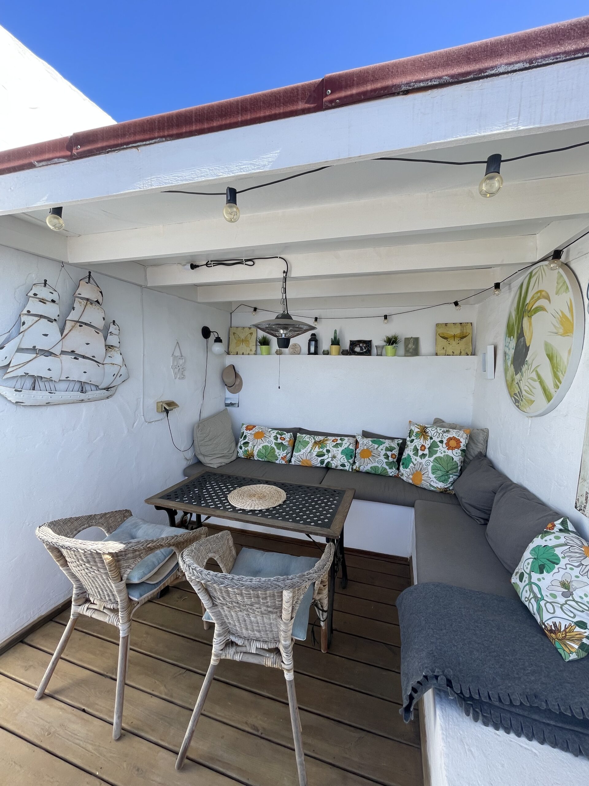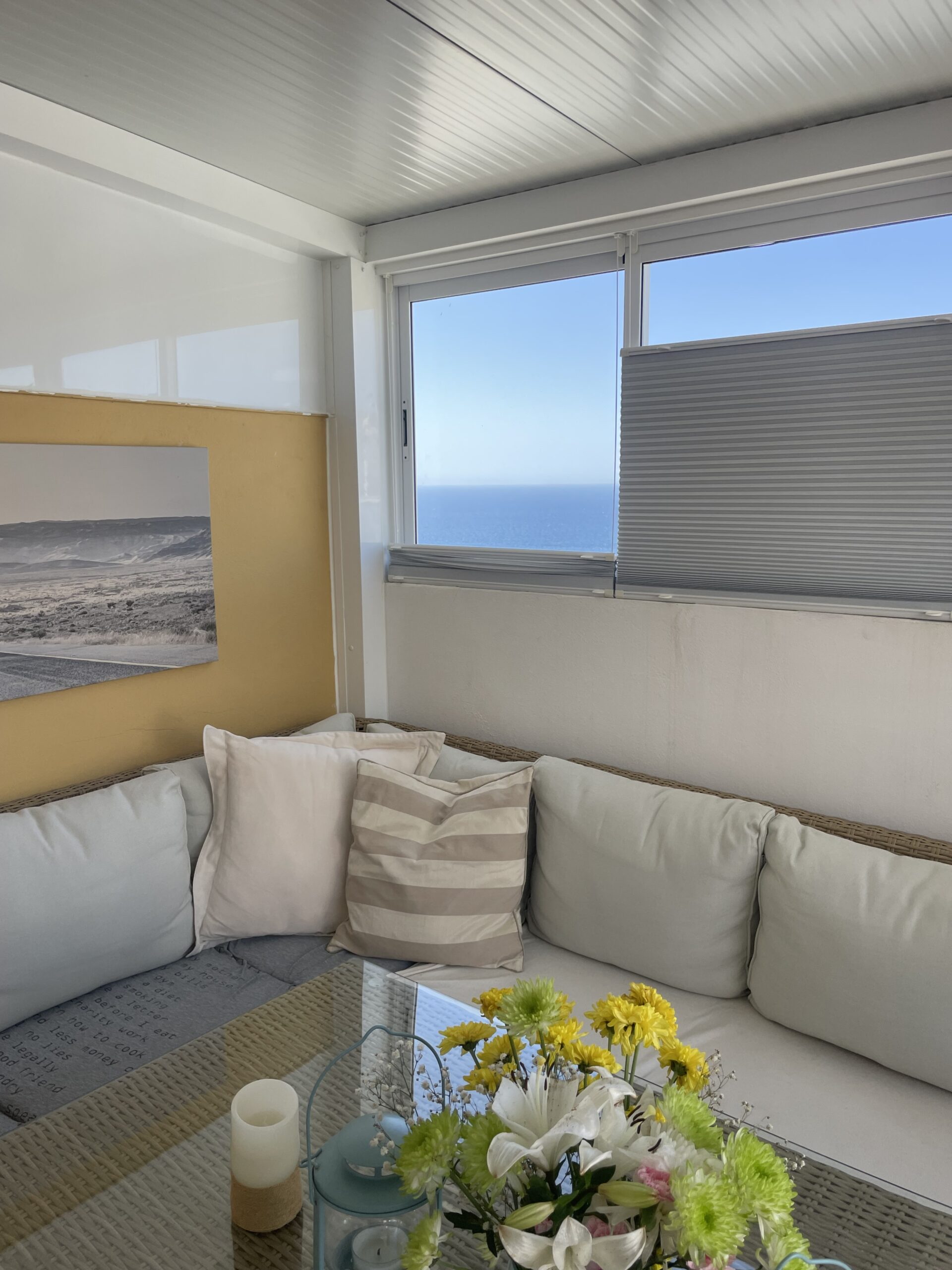 Lys og lekker rekkehusleilighet over to etasjer med flott beliggende i det populære Los Caideros-området, rett bak Anfi Del Mar-anlegget mellom Arguineguin og Puerto Rico.