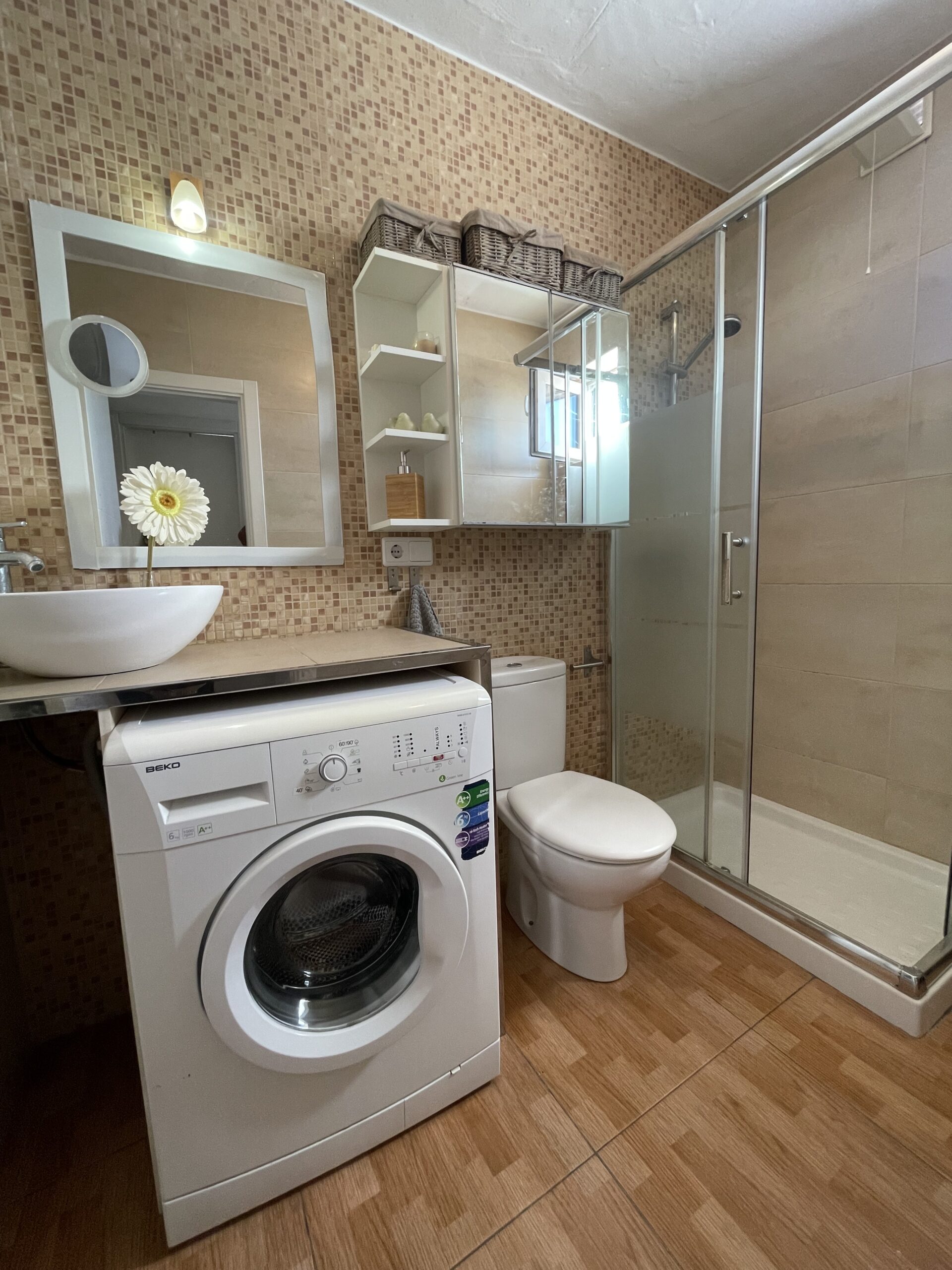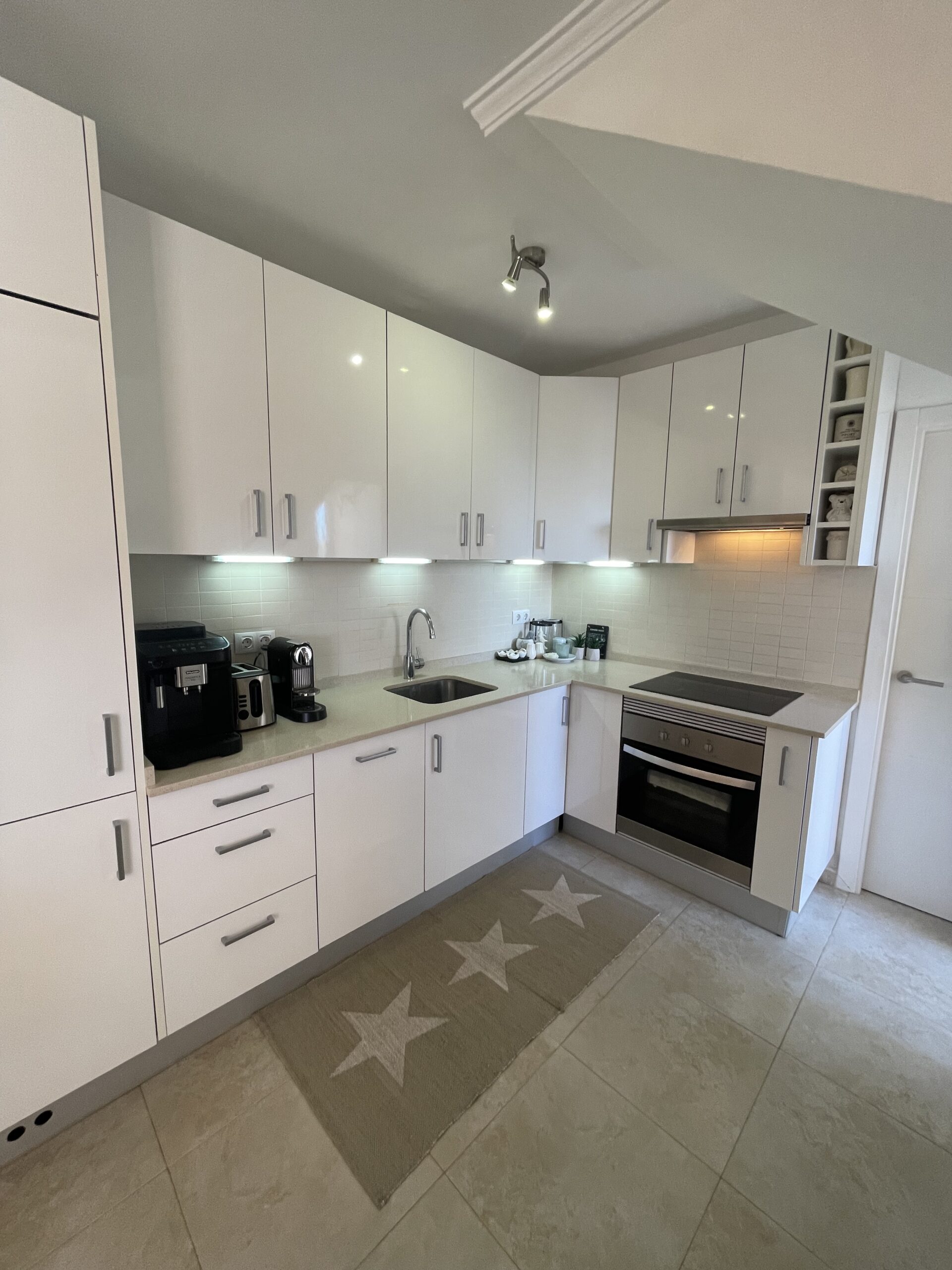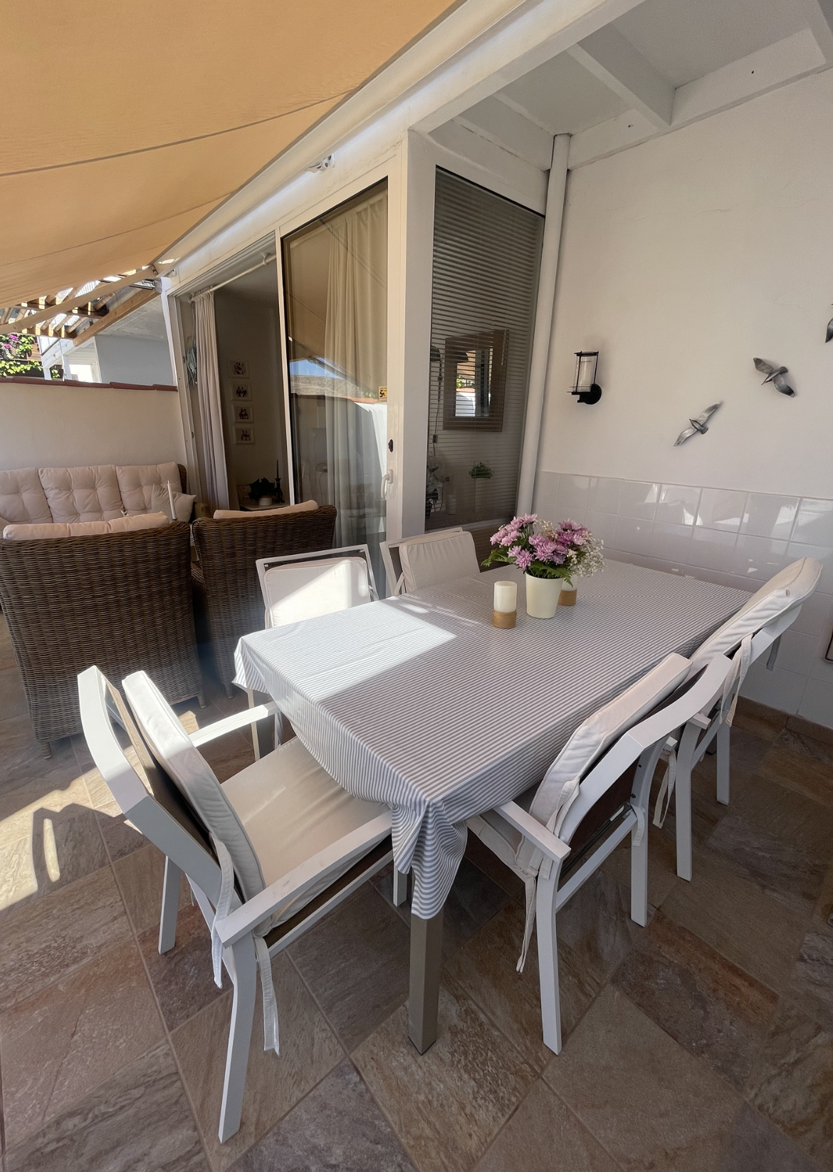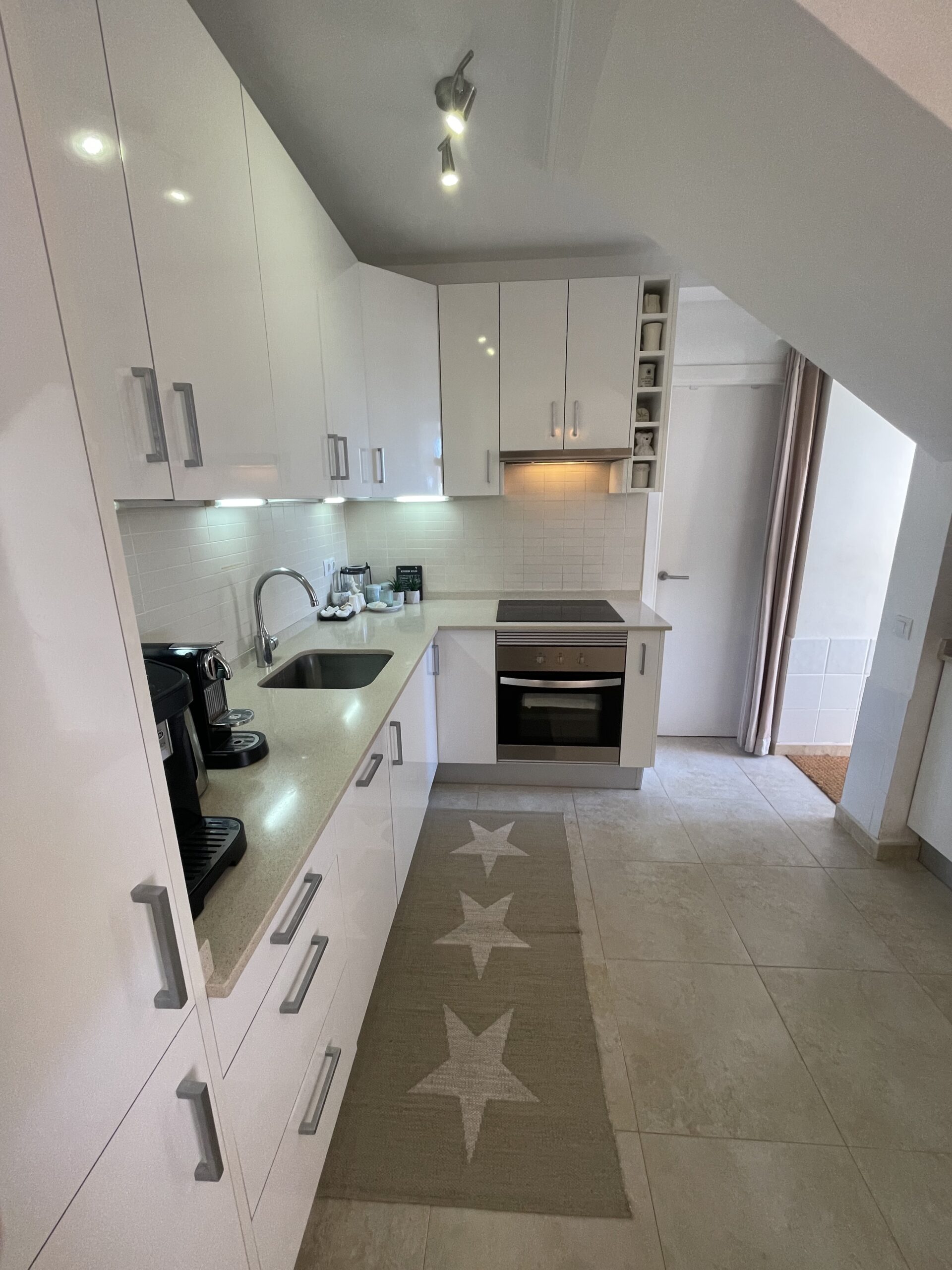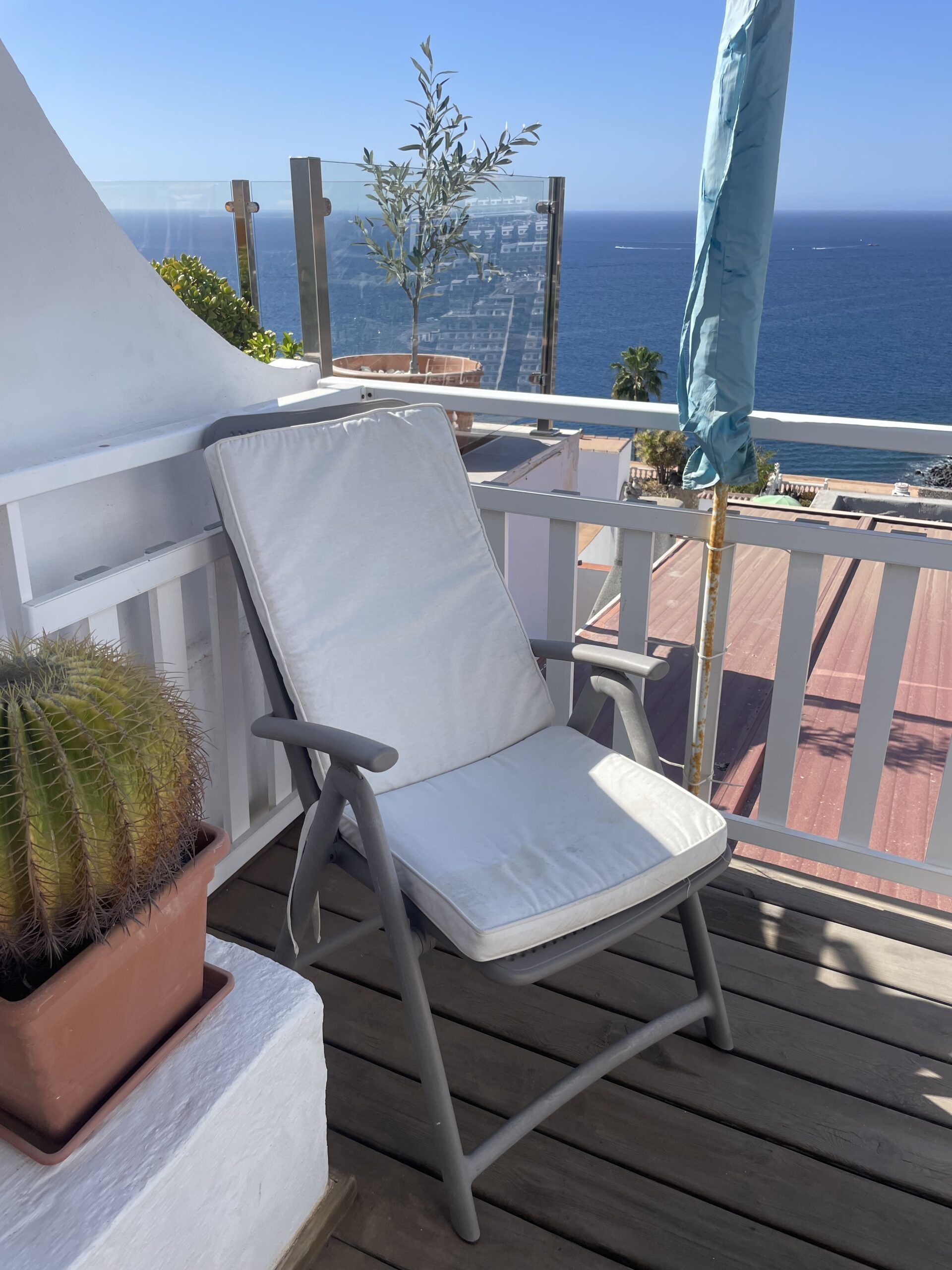 Lys og lekker rekkehusleilighet over to etasjer med flott beliggende i det populære Los Caideros-området, rett bak Anfi Del Mar-anlegget mellom Arguineguin og Puerto Rico.