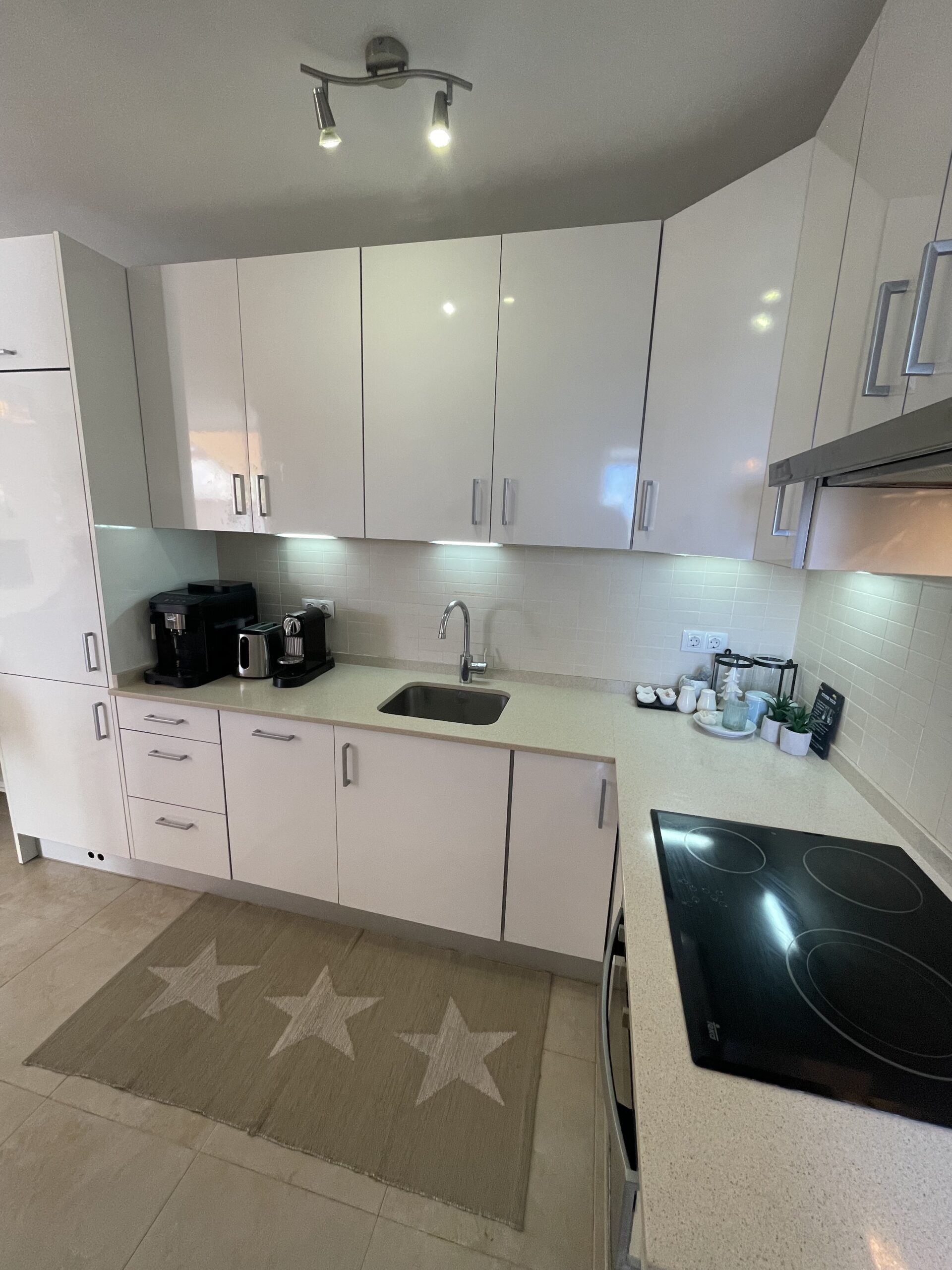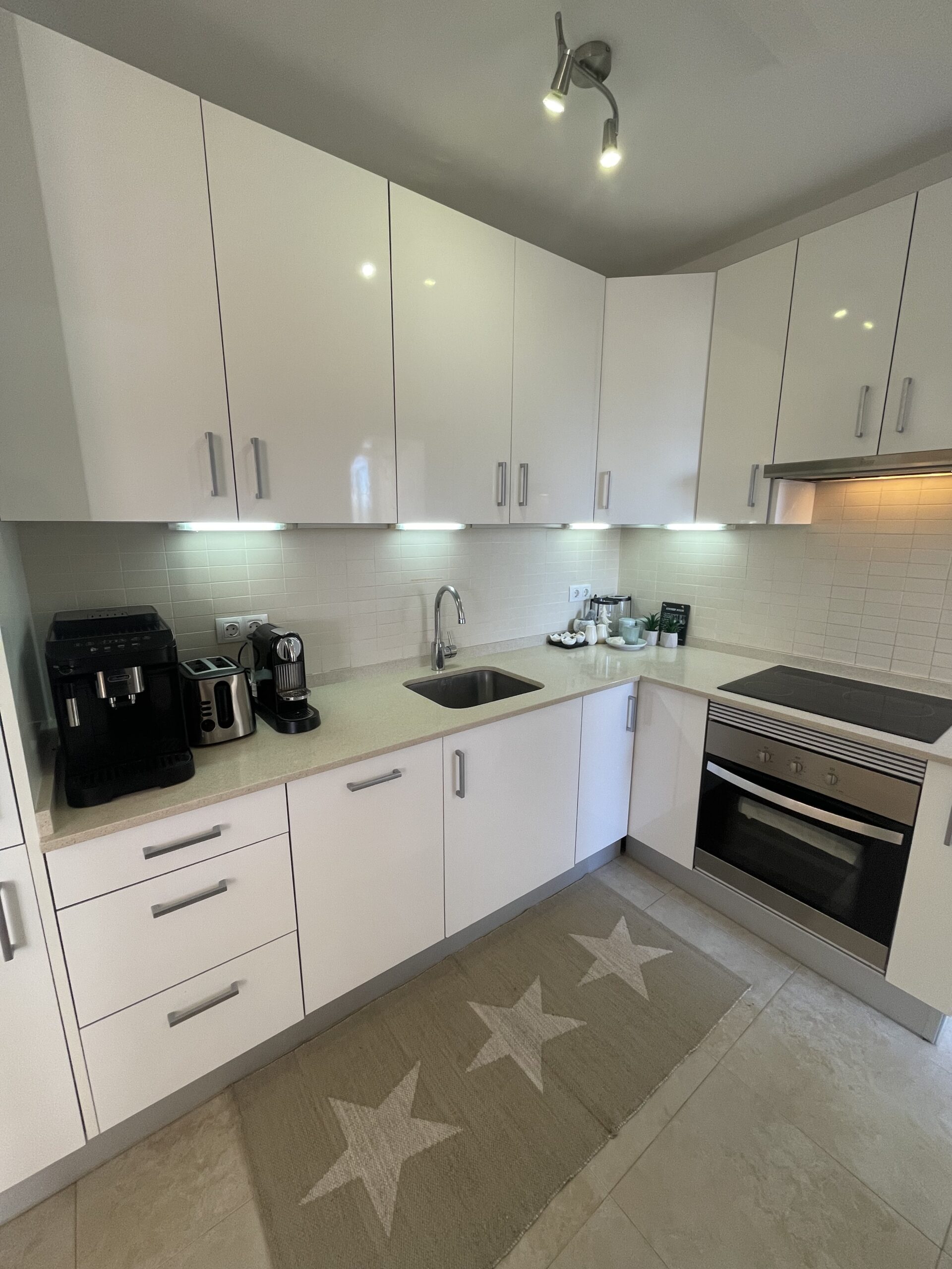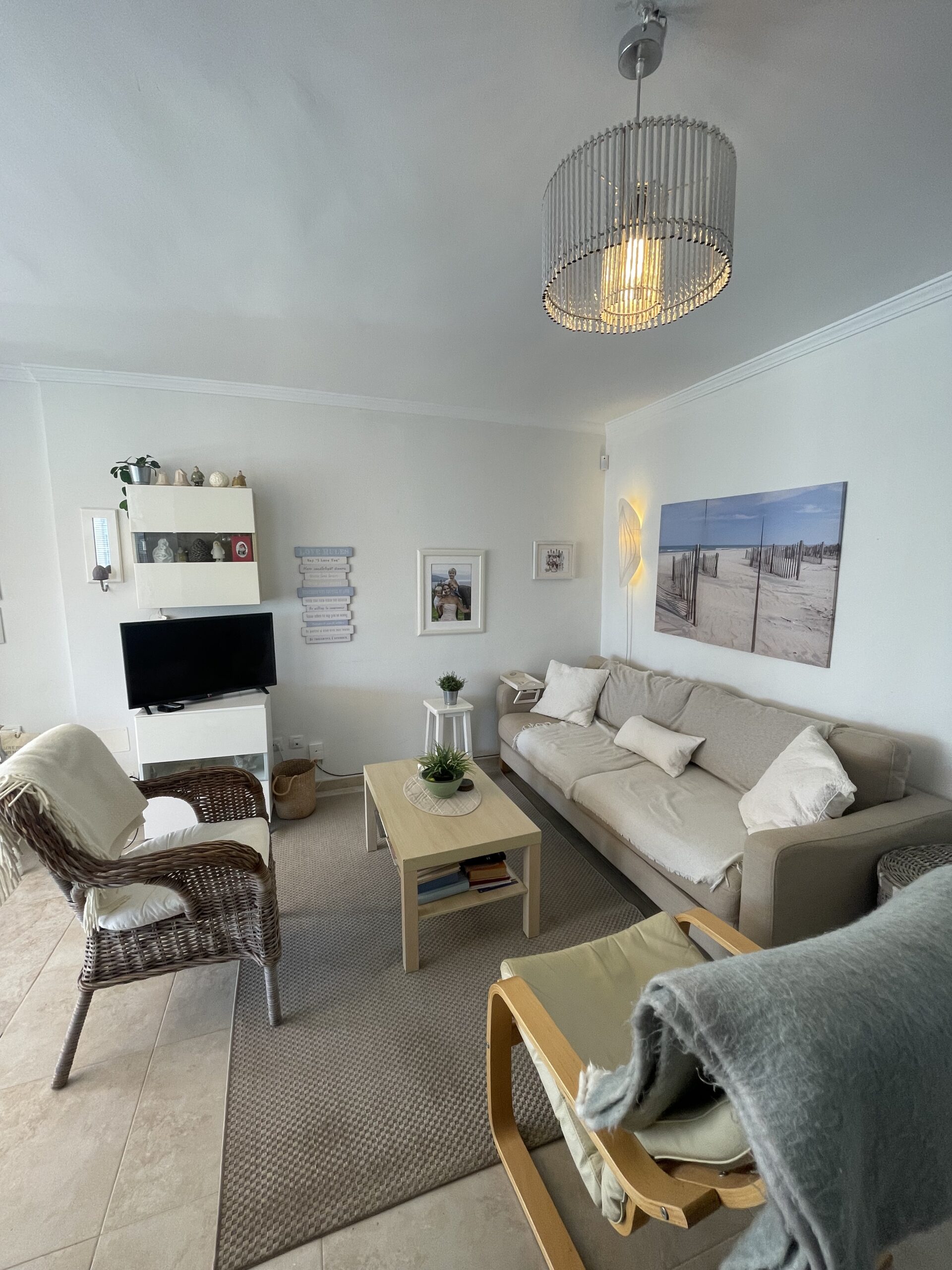 -Åpen stue/kjøkkenløsning: Stuen har hyggelig sofagruppe med TV (+chromecast) og utgang til terrassen. Kjøkkenet er fullt utstyr i hht. norsk standard med godt med skap- og benkeplass, og har stort kjøl/fryseskap, stekeovn og kokeplater, oppvaskmaskin, microbølgeovn og kaffemaskin.