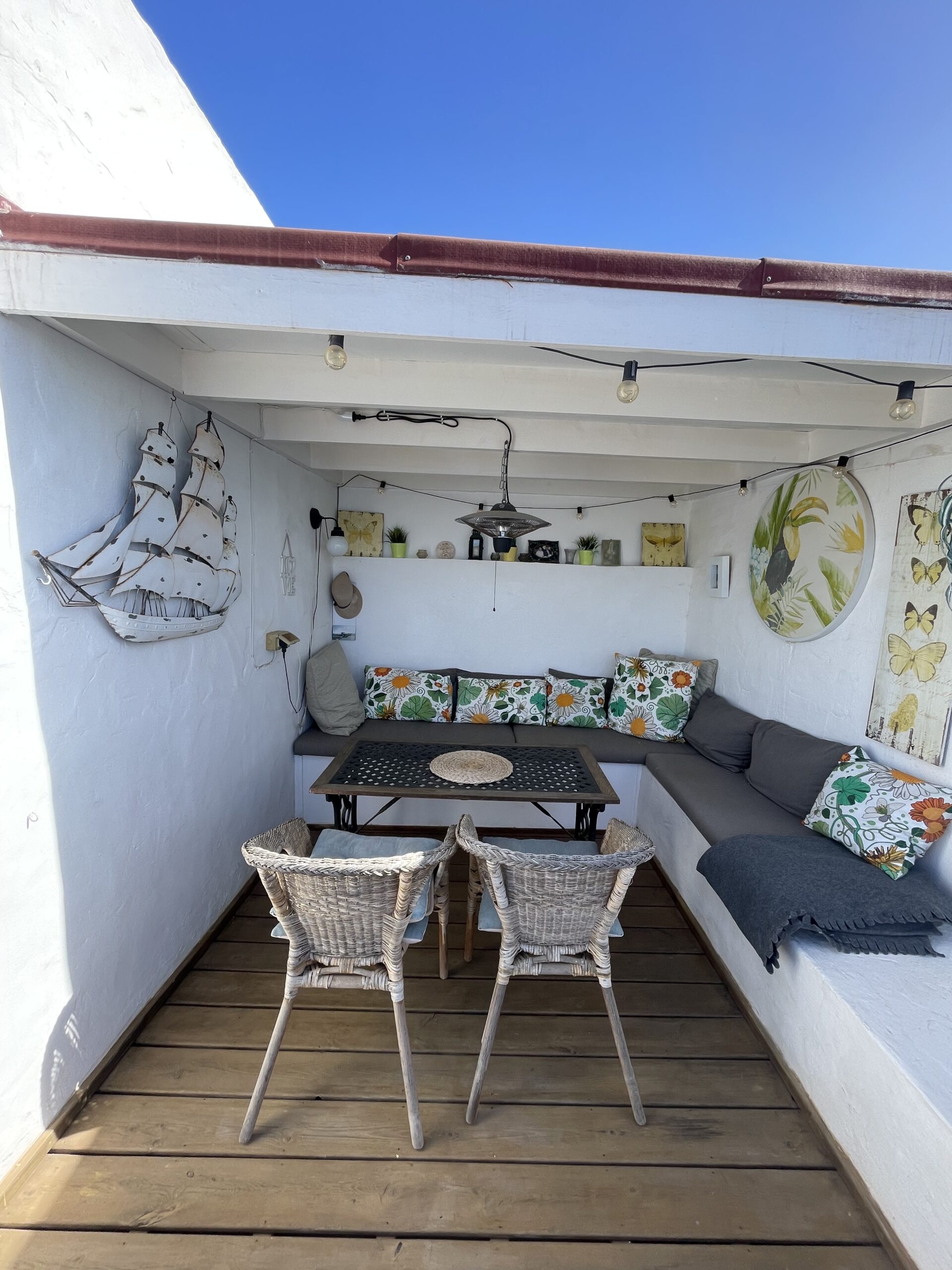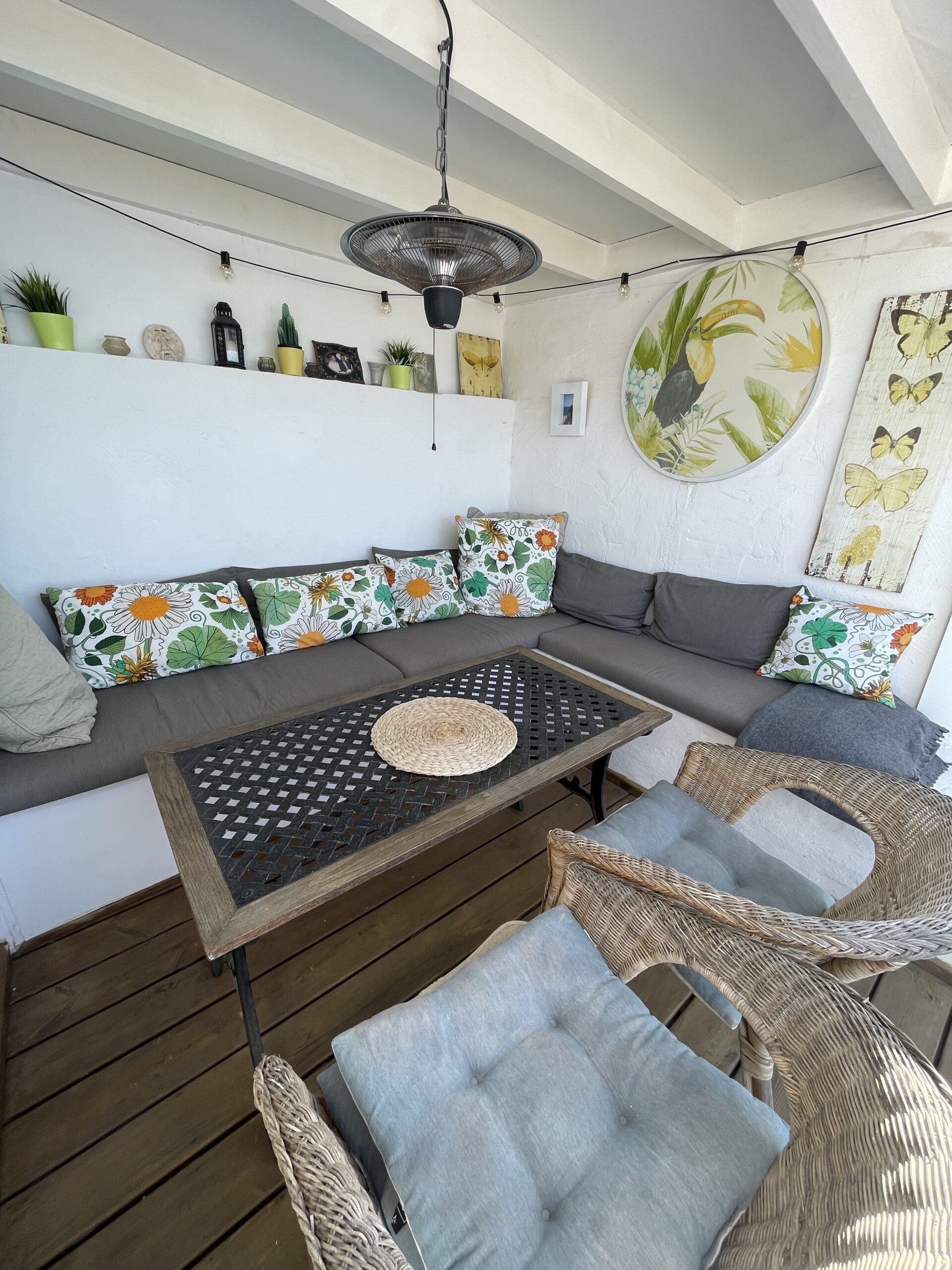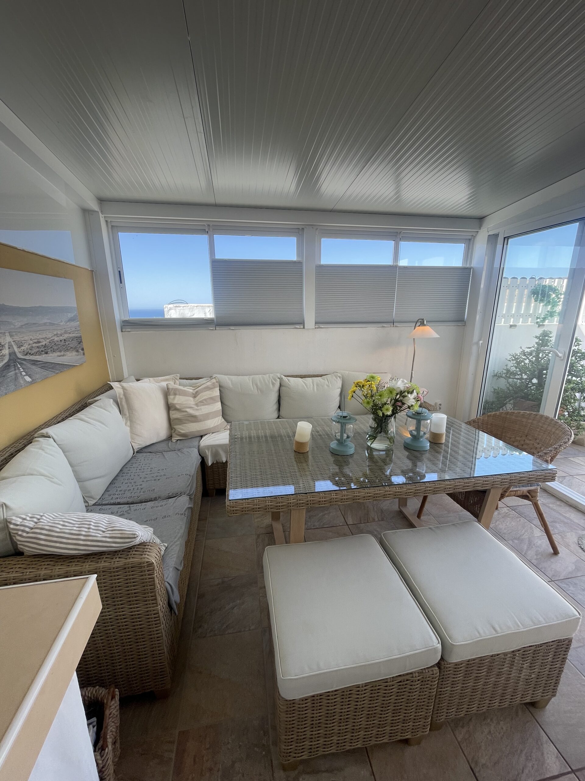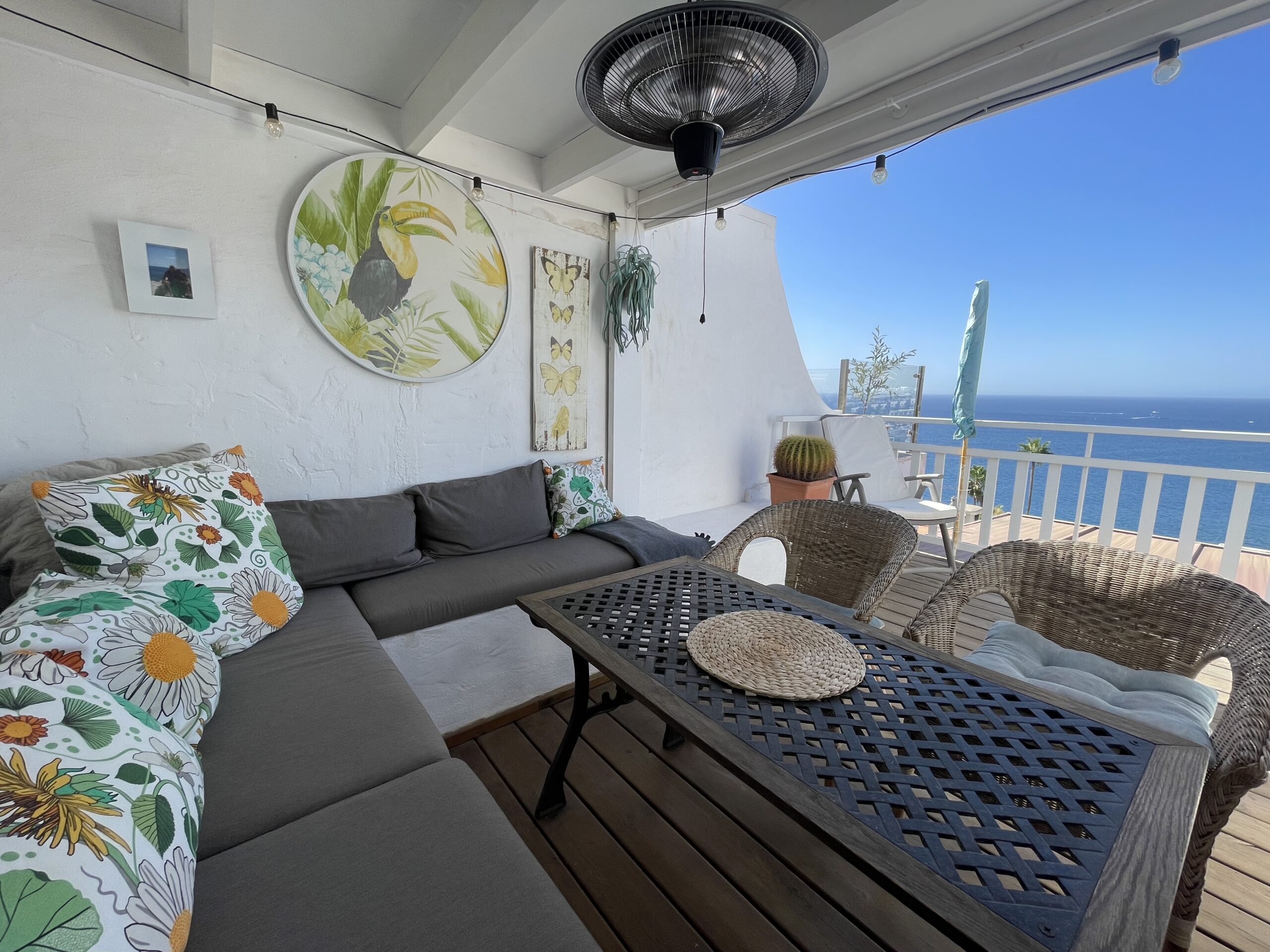 -Utsiktsbalkong i andre etasje samt skjermet utestue med fantastisk havutsikt og de vakreste solnedgangene!