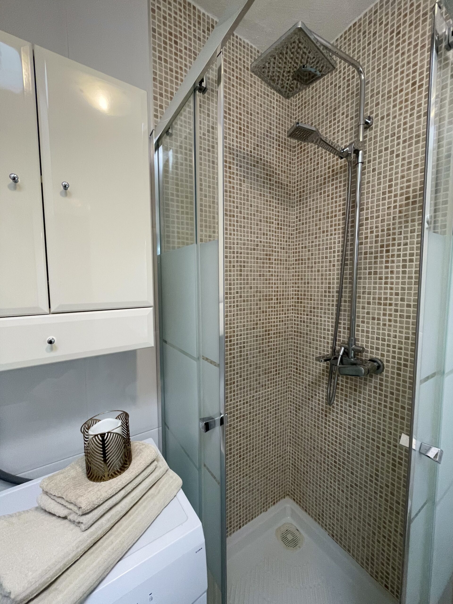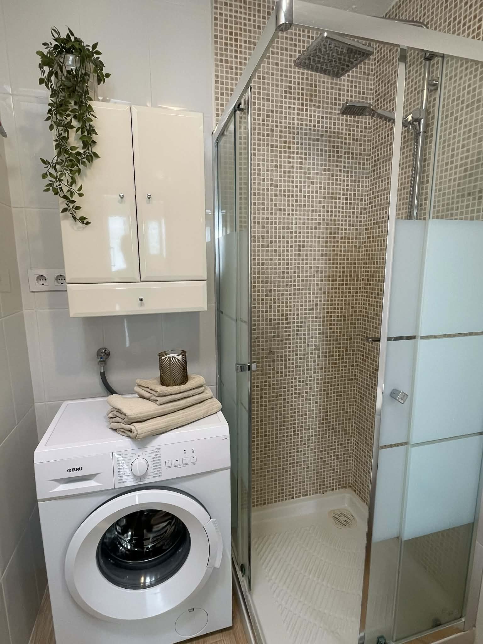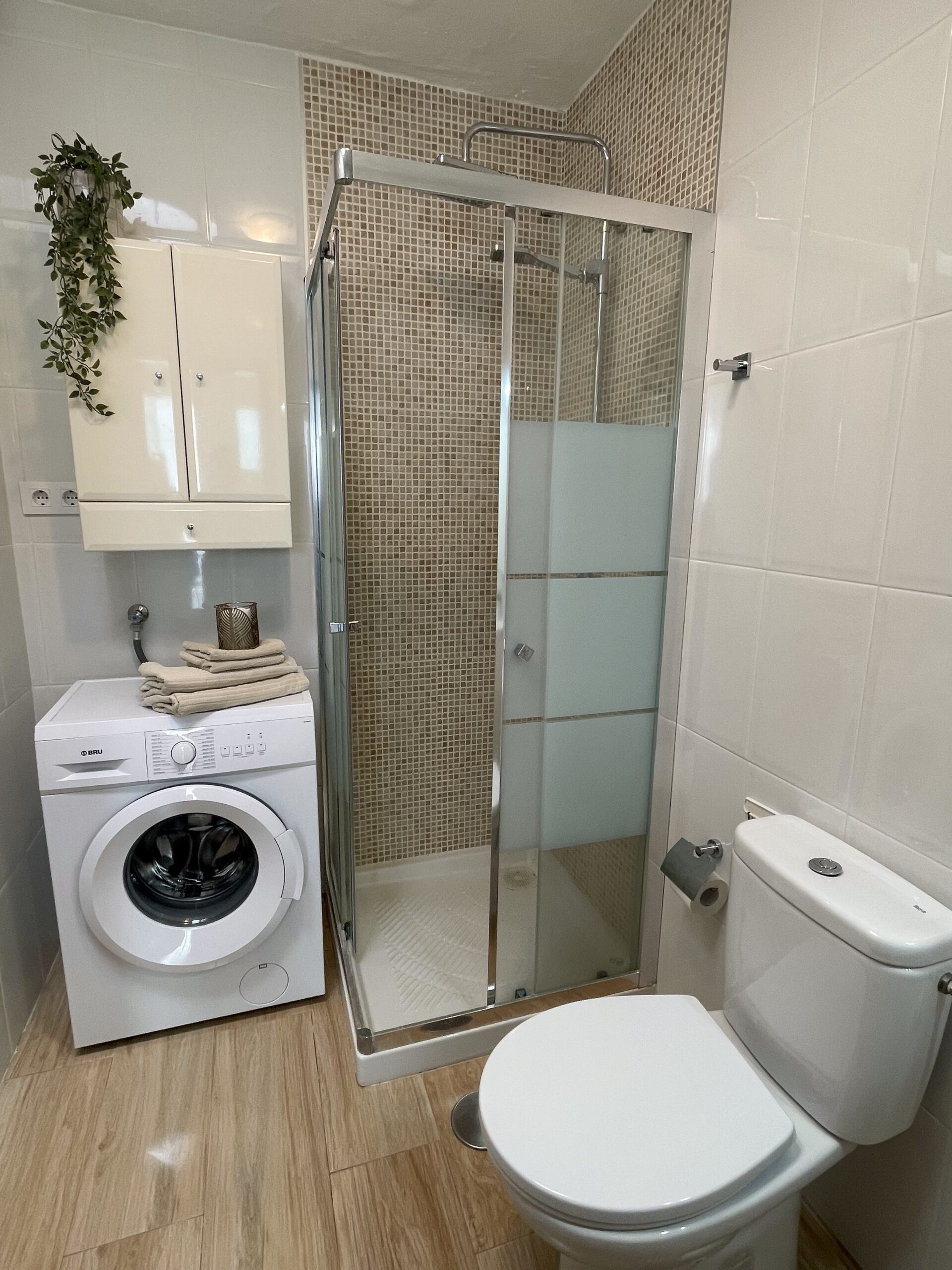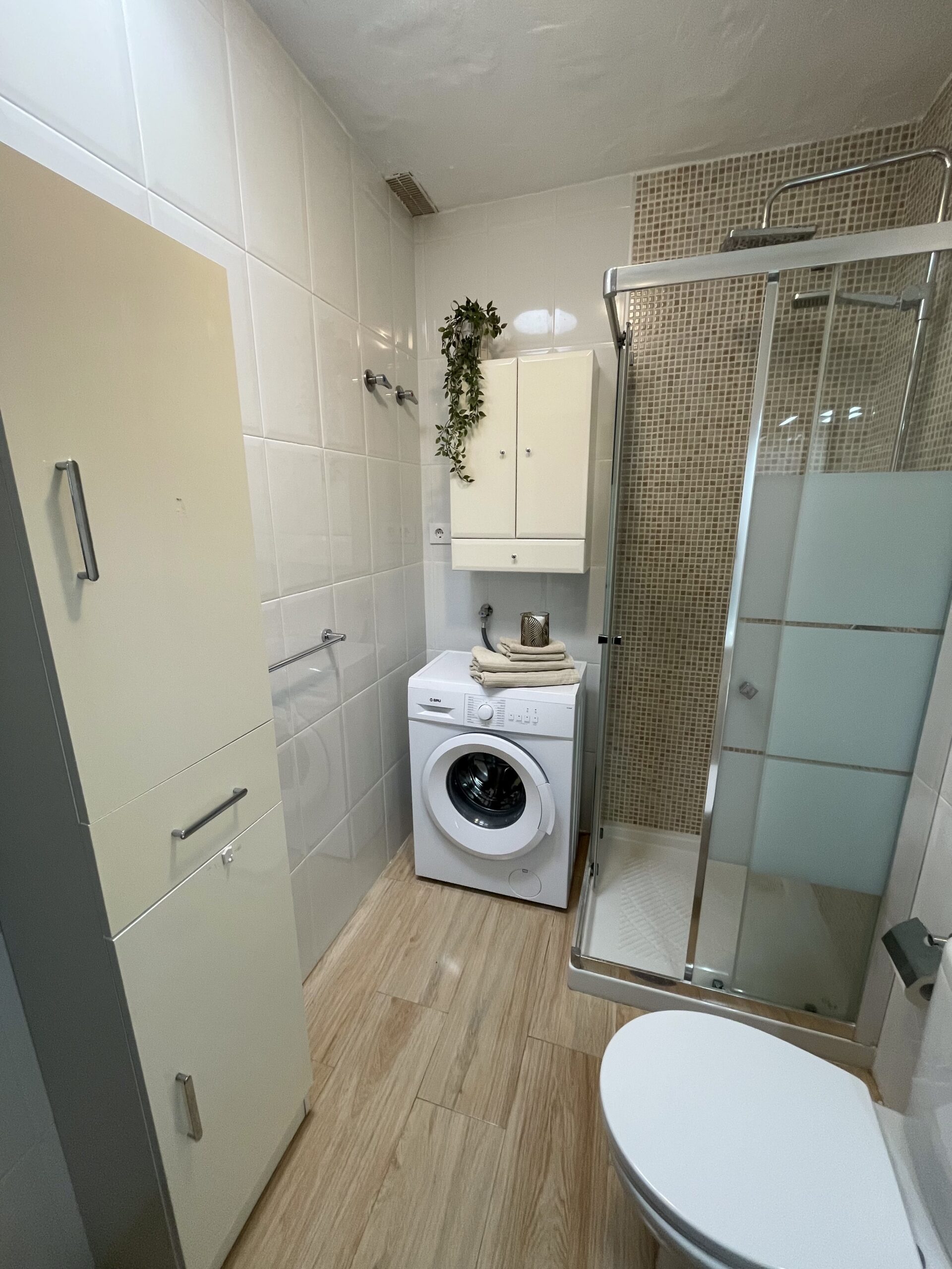 -Moderne bad med dusj, toalett og vaskemaskin. Bra med skapplass.