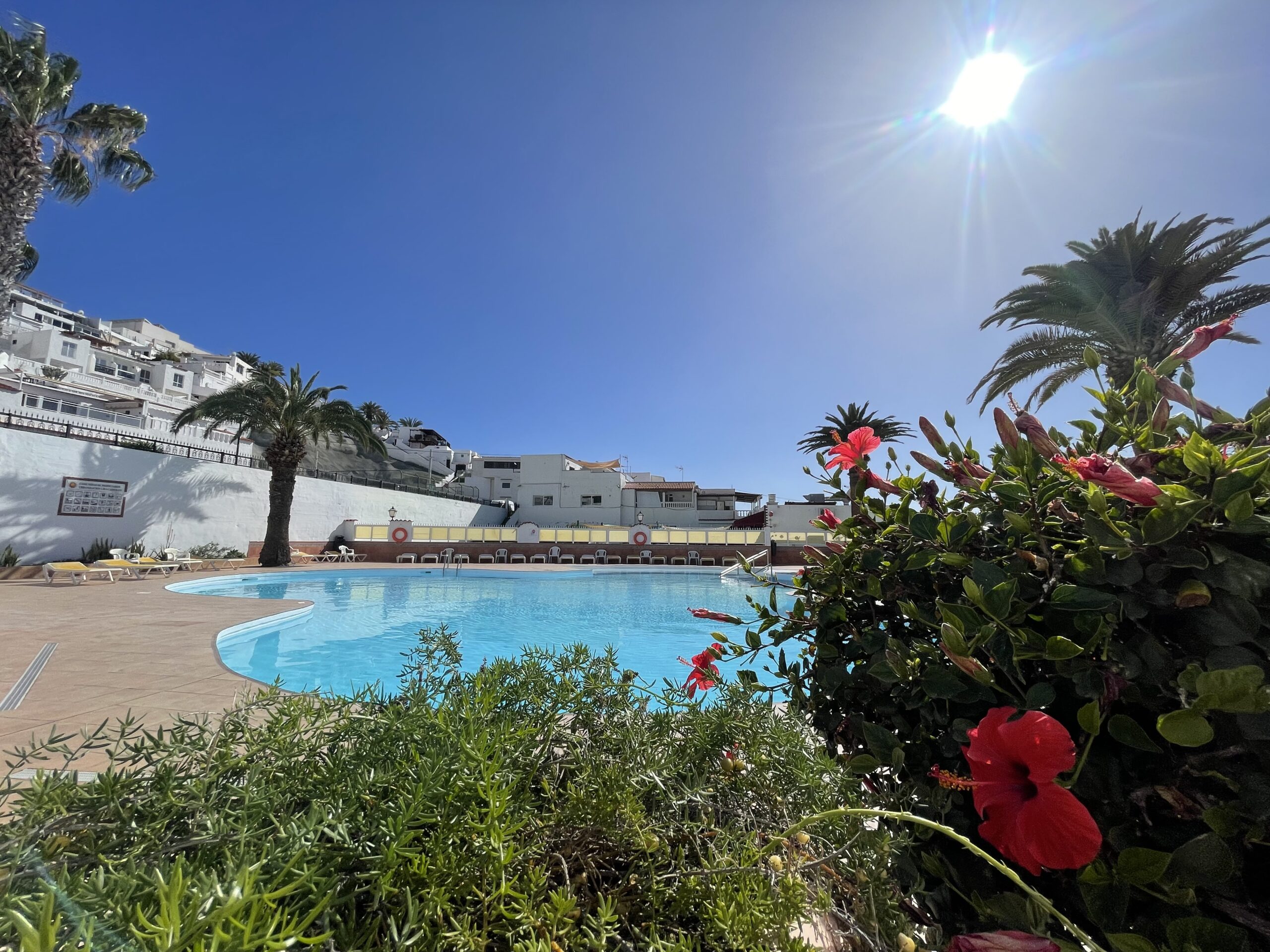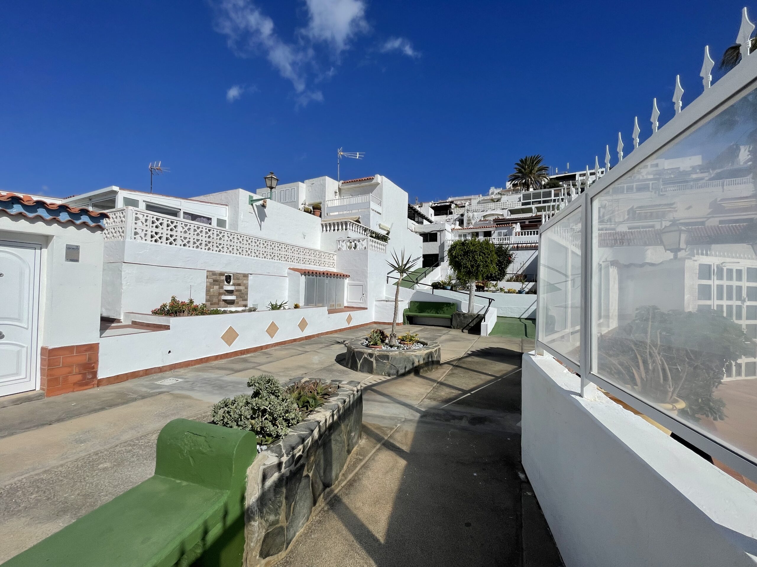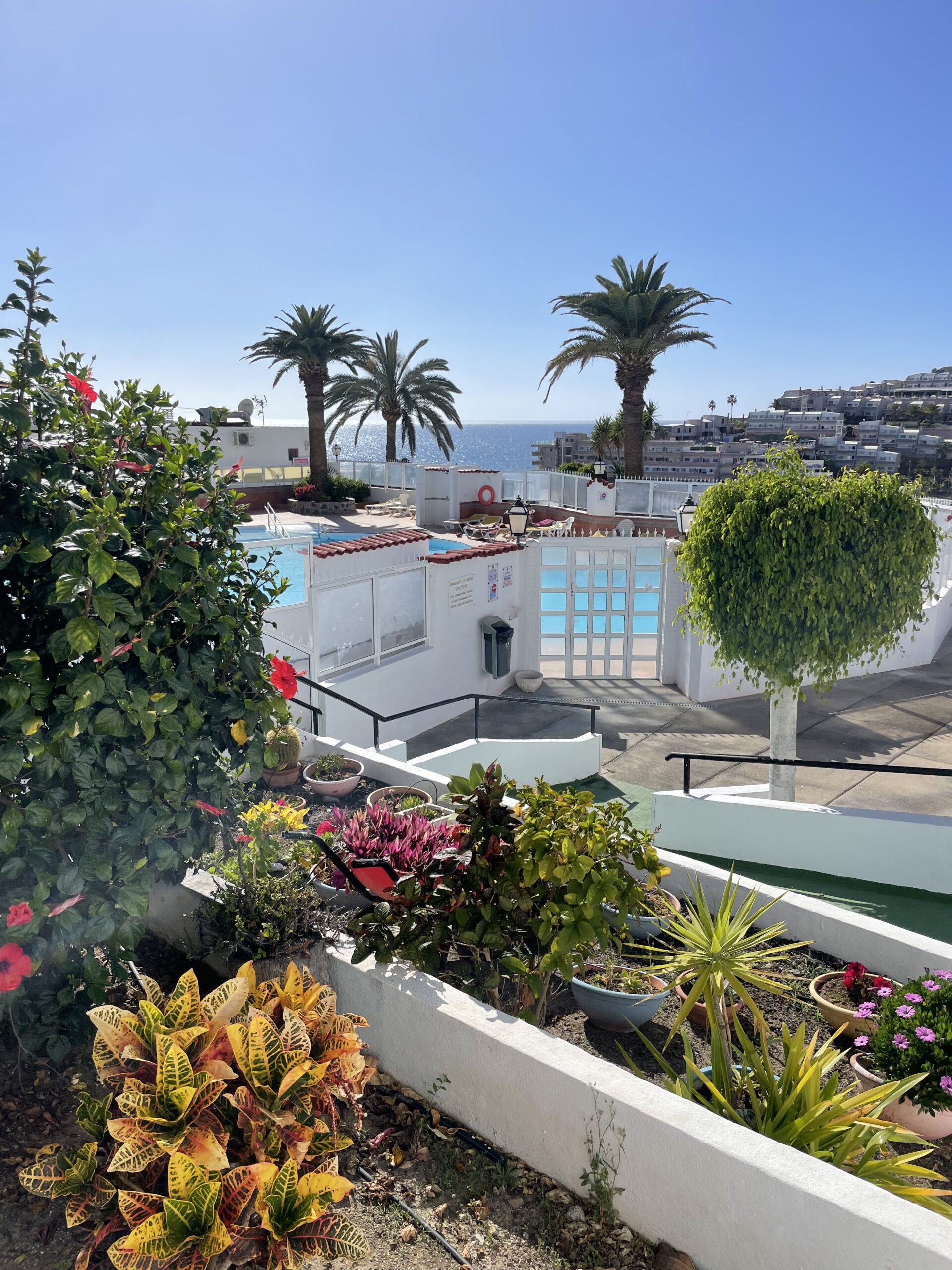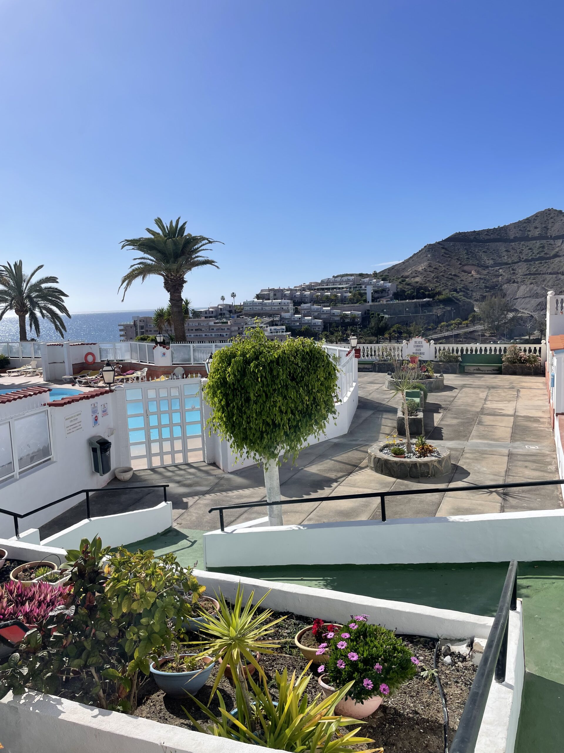 Gangavstand til den norske skolen og til Valle Marina, det norske helsesenteret for behandlingsreiser. Ca. fem minutter å kjøre til både Puerto Rico og Arguineguin og ca. 30 min. å kjøre til flyplassen. Buss- og taxiholdeplass i nærområdet.