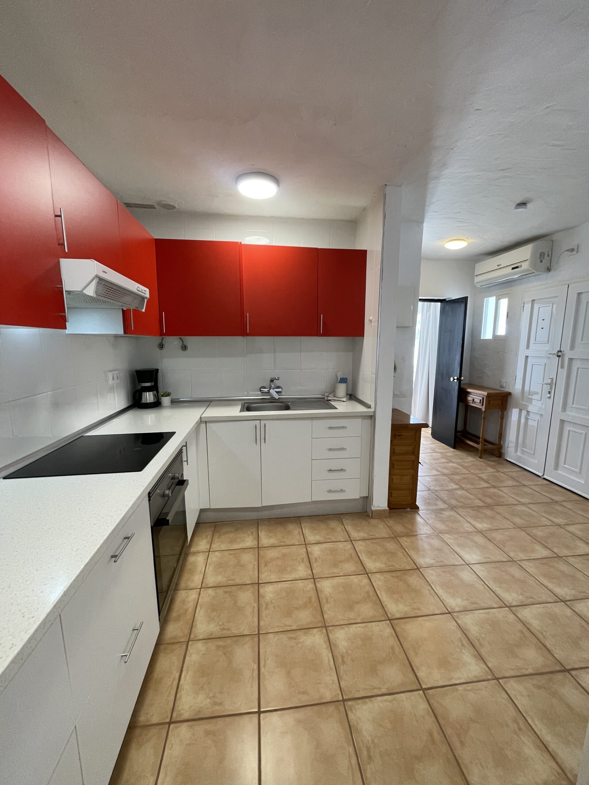 -Åpen stue/kjøkkenløsning med fullt utstyrt kjøkken, spiseplass og sofakrok med tv. Godt med skap- og benkeplass på kjøkkenet. Air condition og vifte i taket på stua.