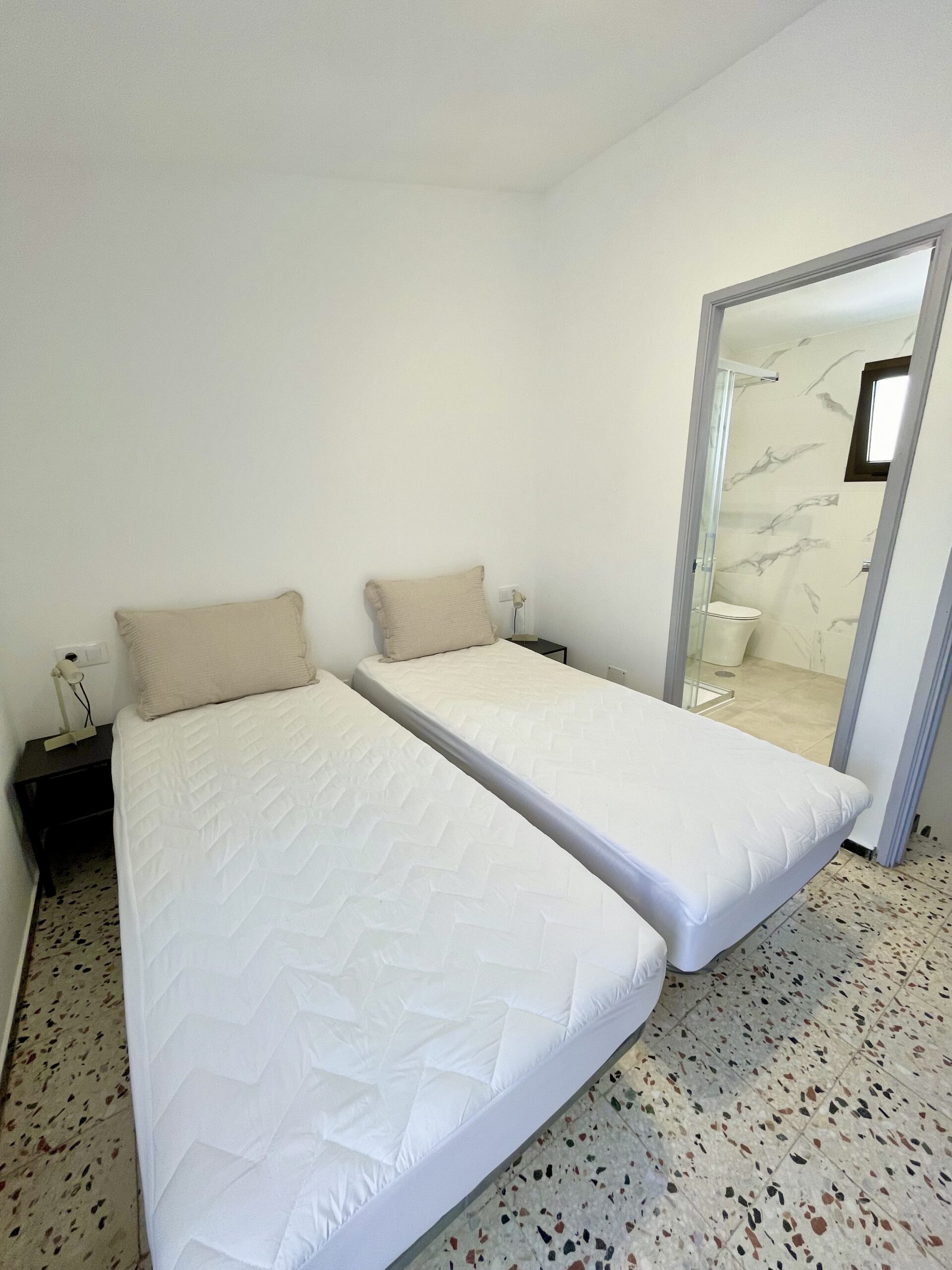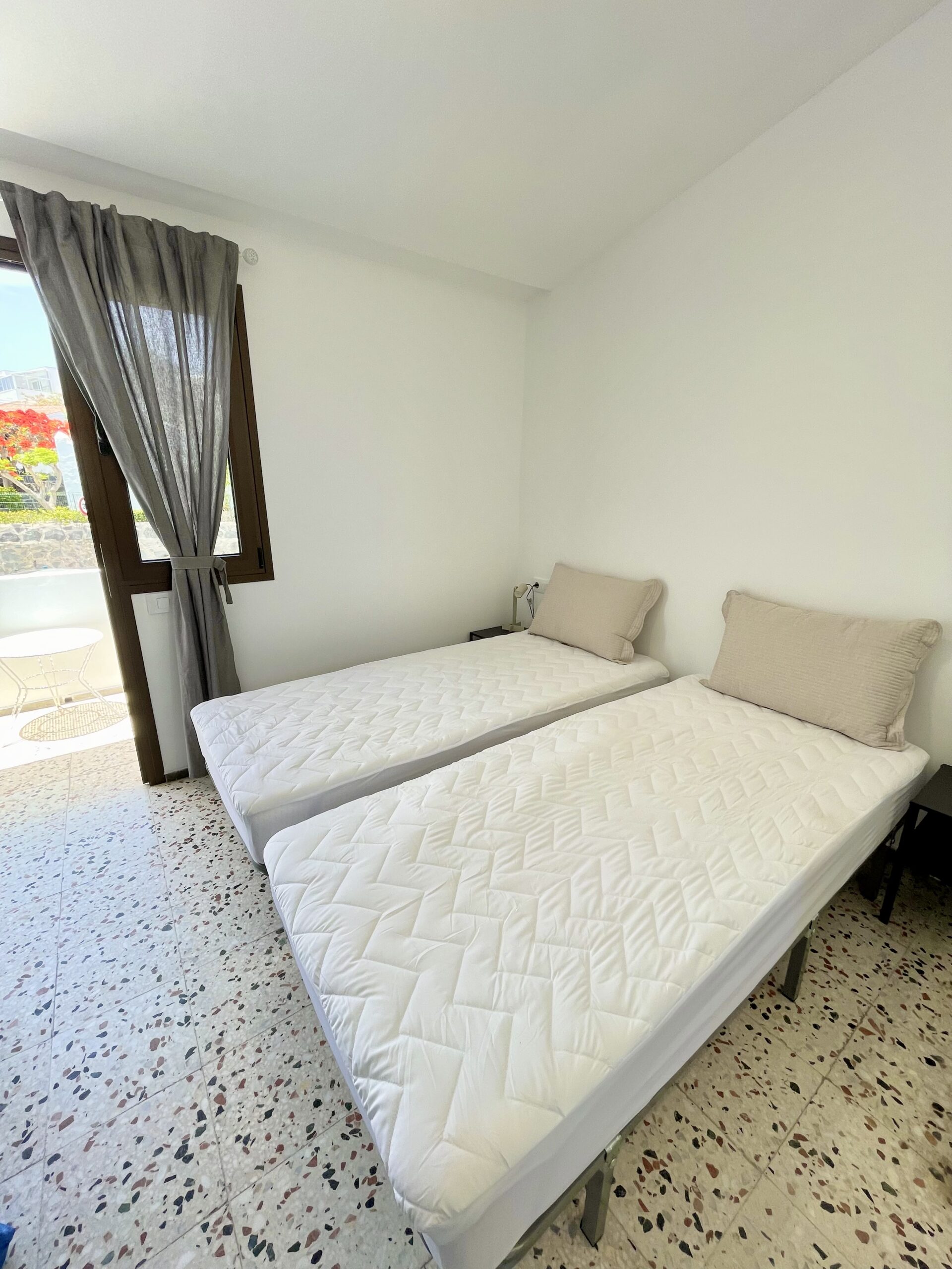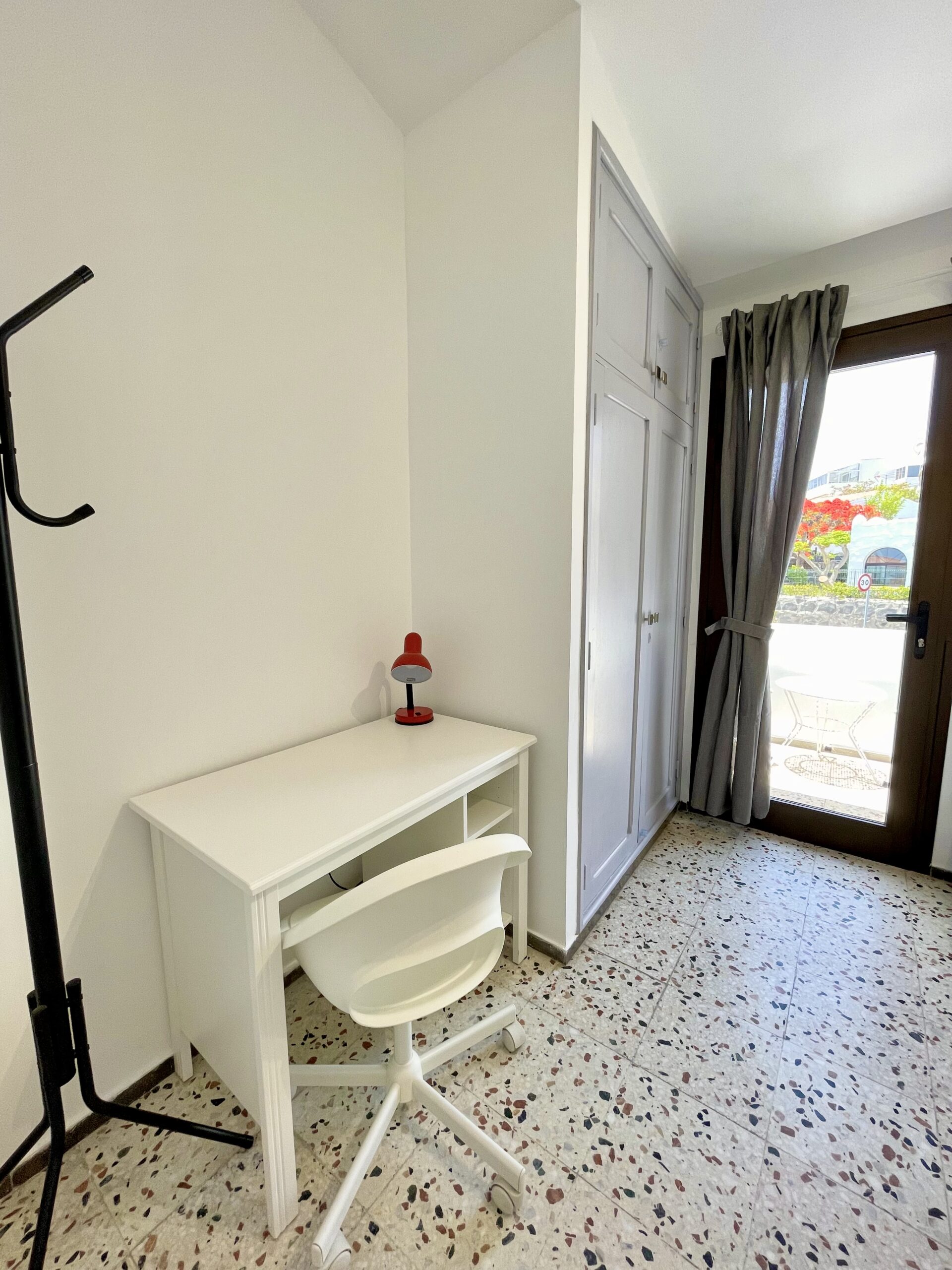 – 1 soverom med to enkeltsenger (kan settes sammen til dobbeltseng). Garderobeskap, skrivepult med kontorstol og utgang til balkong