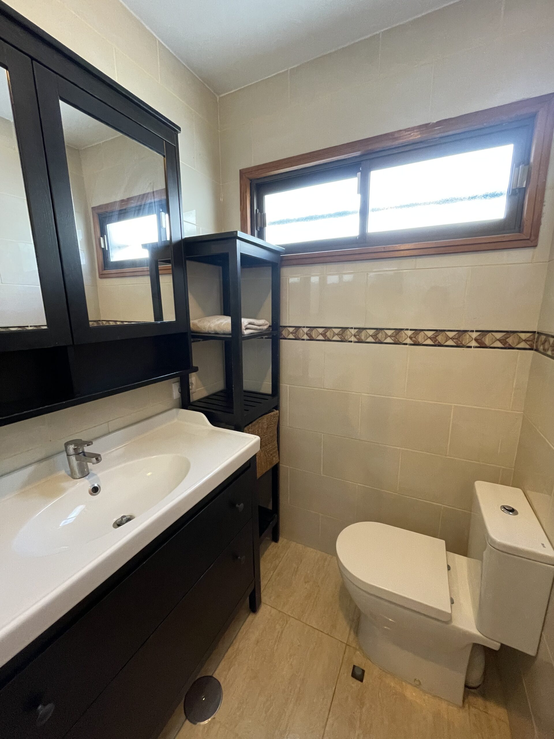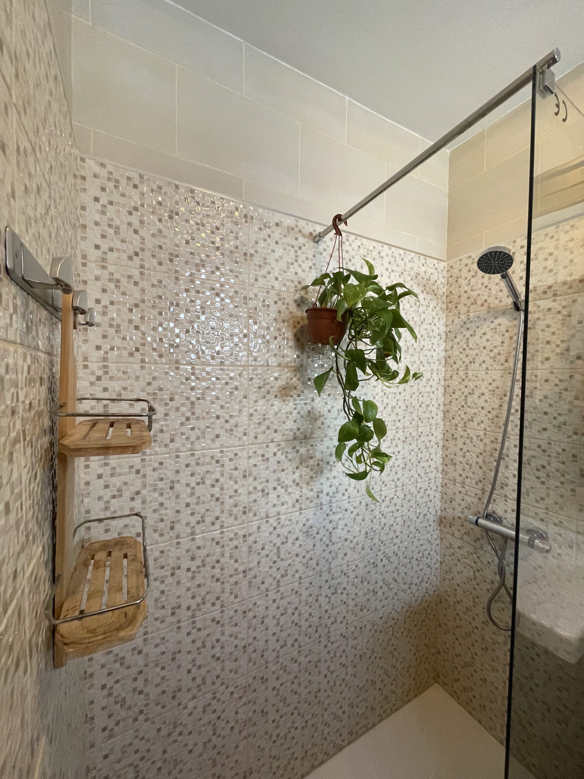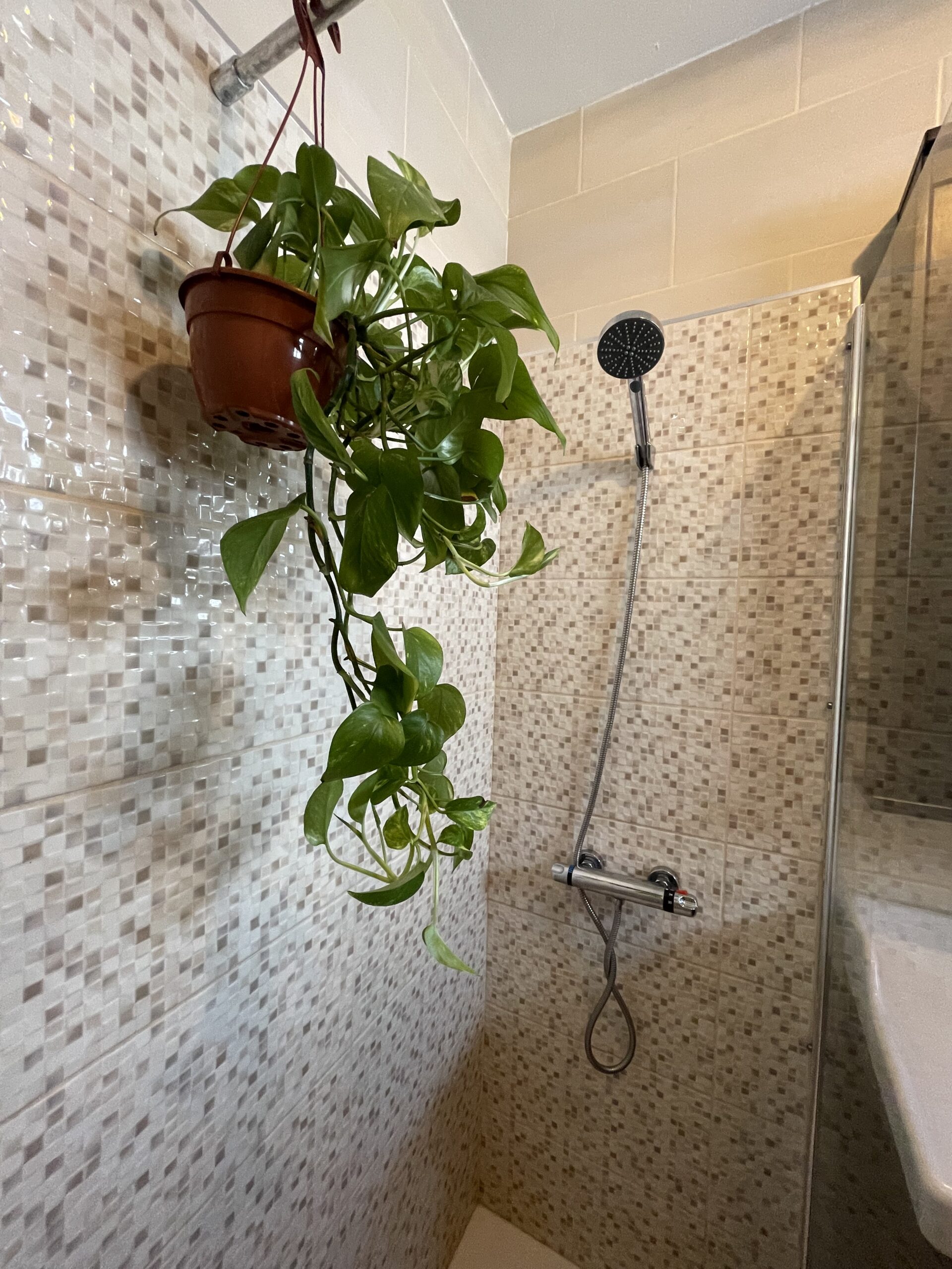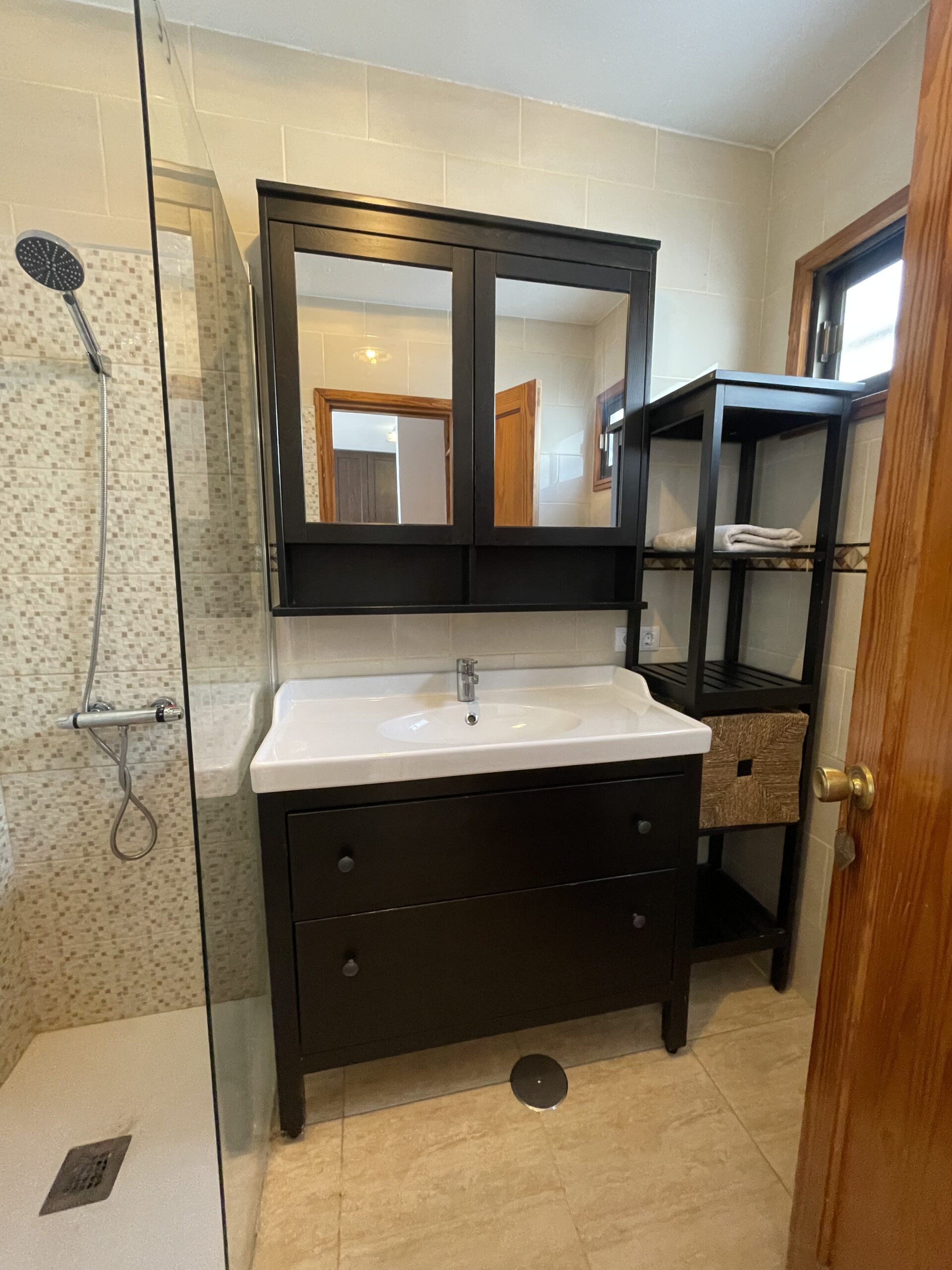 -Bad med dusj, toalett og godt med oppbevaringsplass