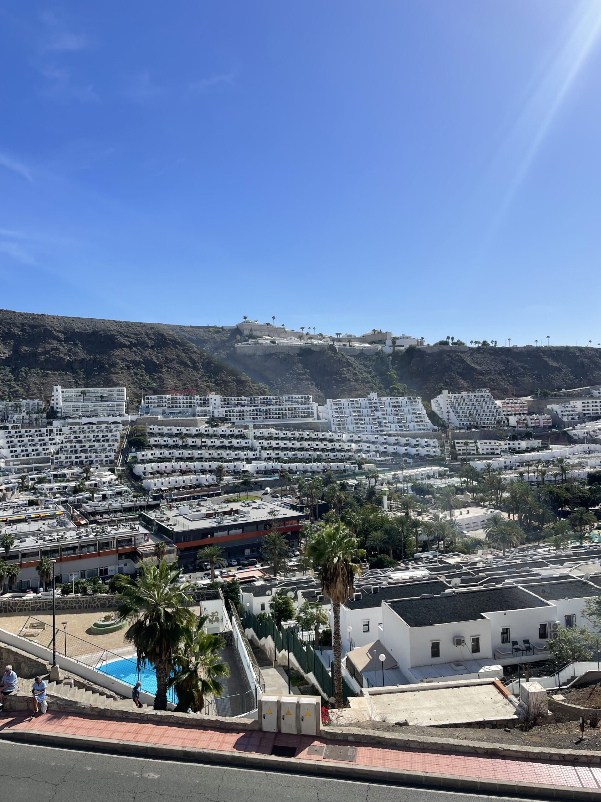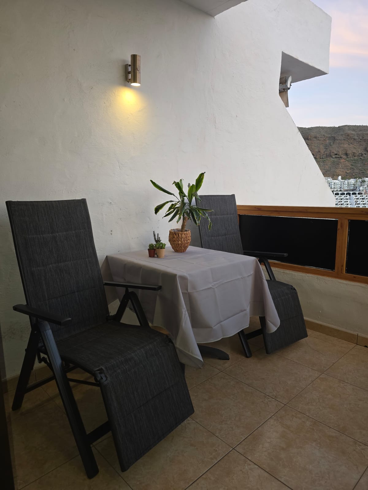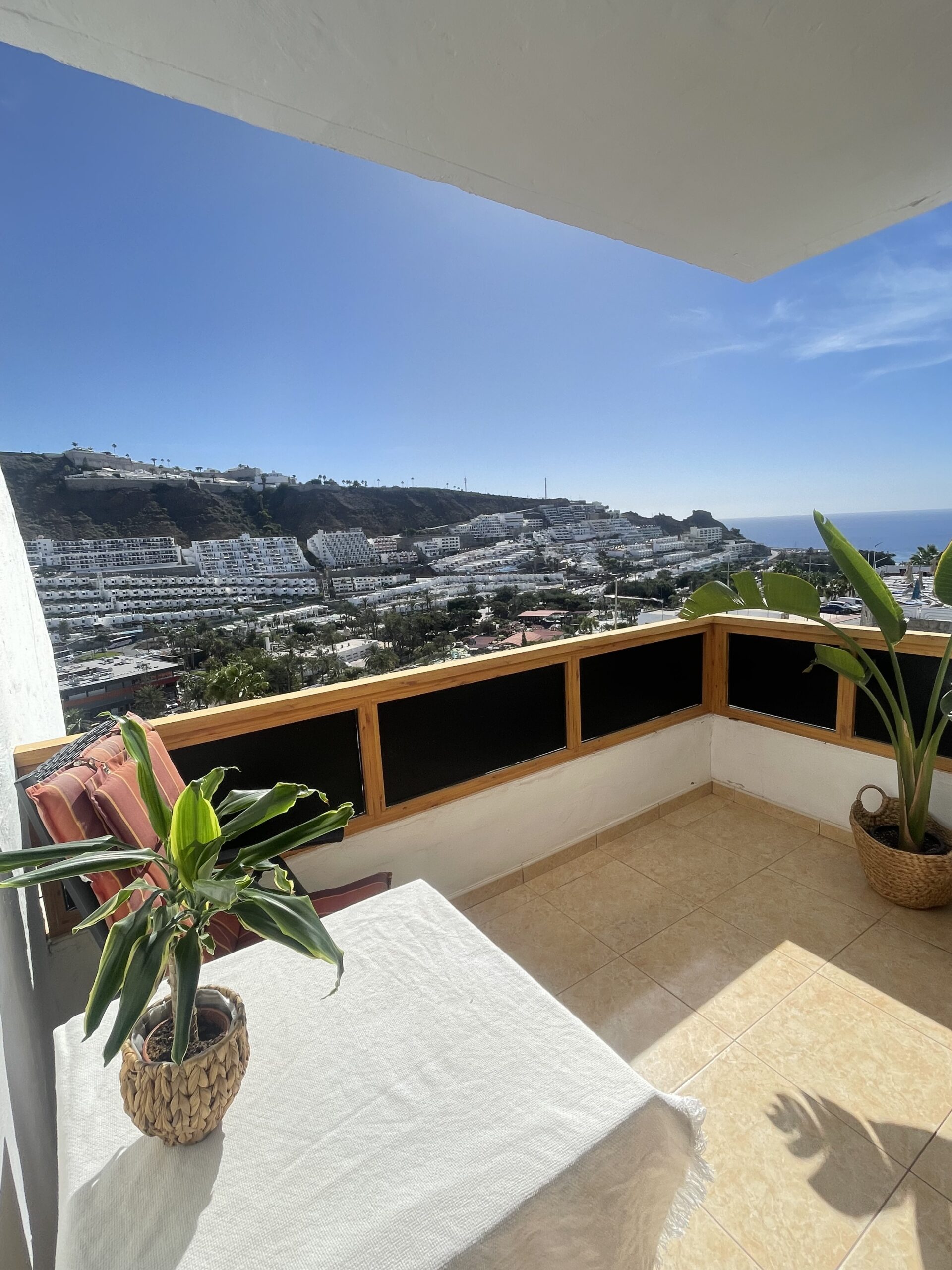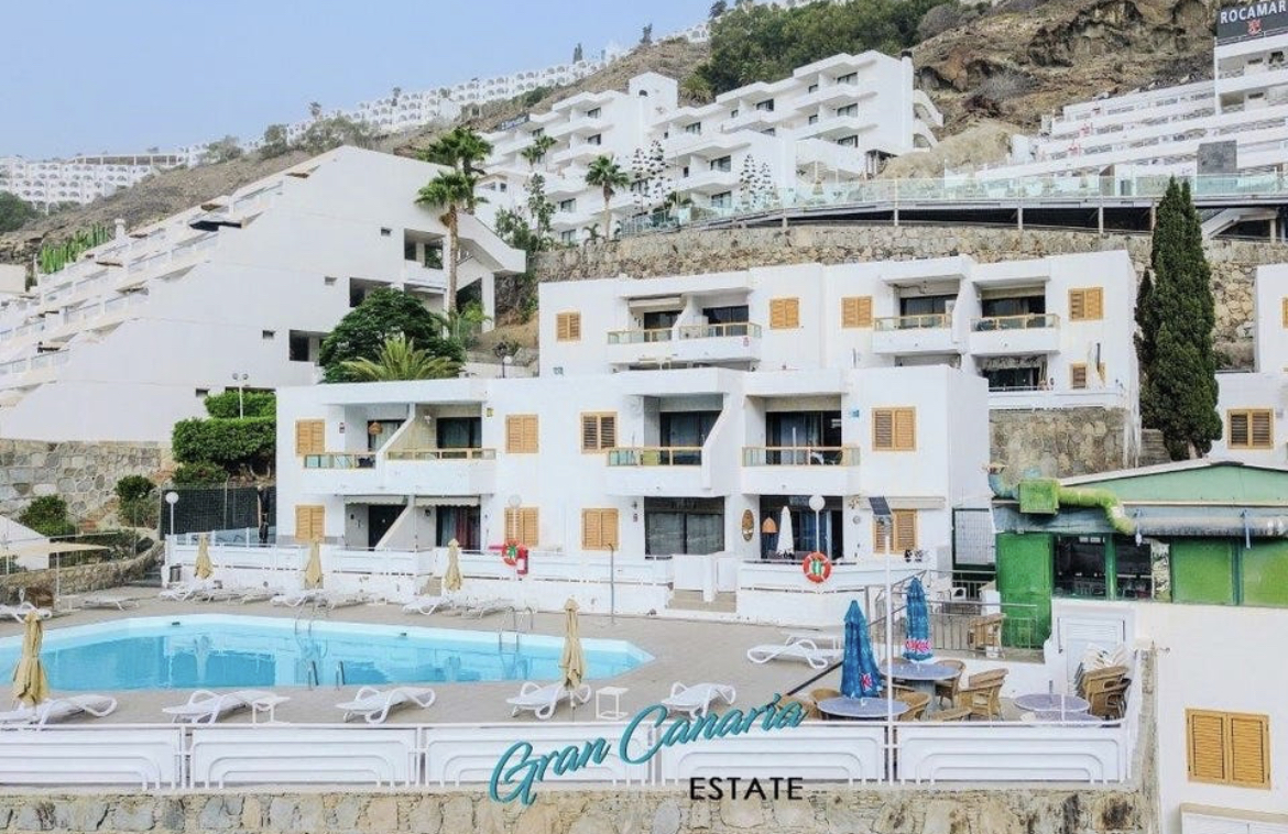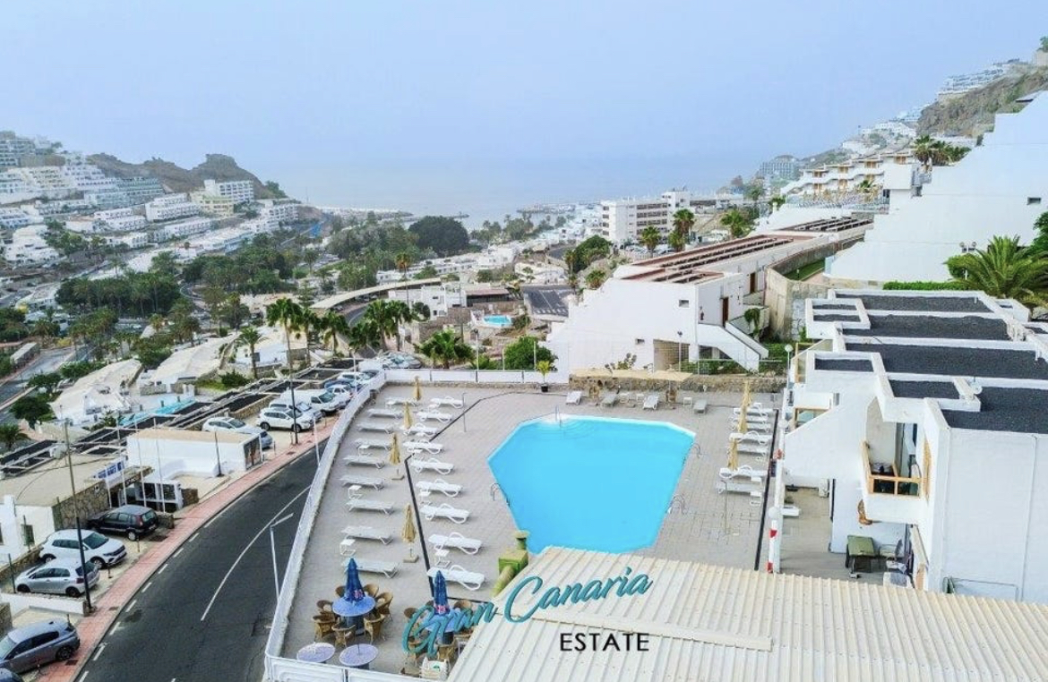 Balkong med nydelig havutsikt og utsikt over Puerto Rico. Tilgang til hyggelig fellesområde med basseng og solsenger. Populær poolbar i komplekset i høysesongen.