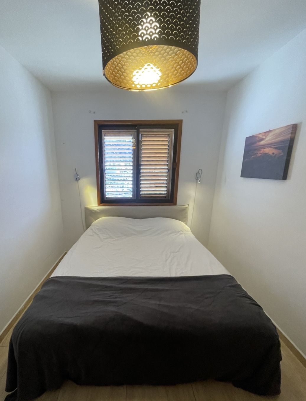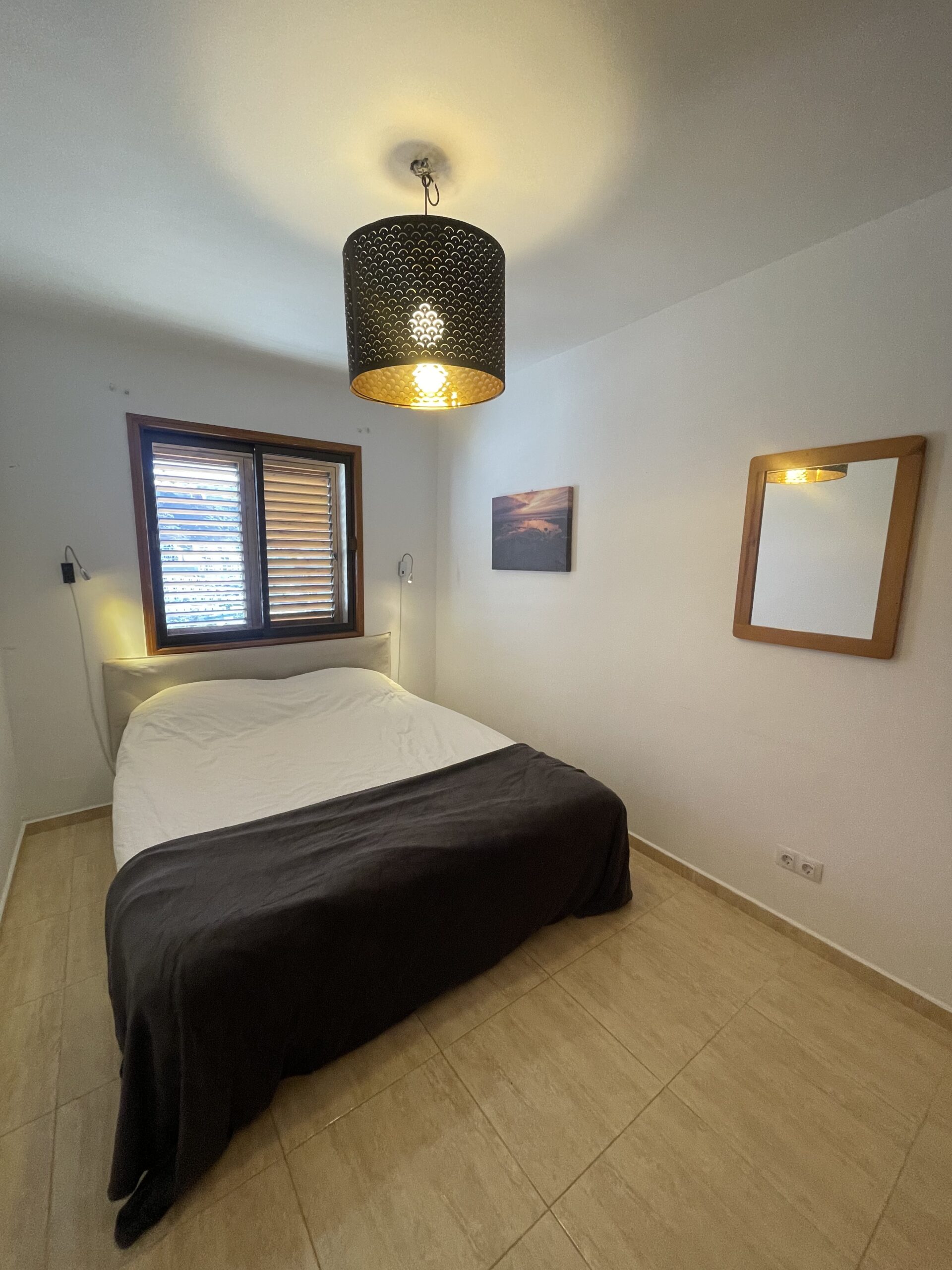 -Ett soverom med dobbeltseng og godt med skapplass