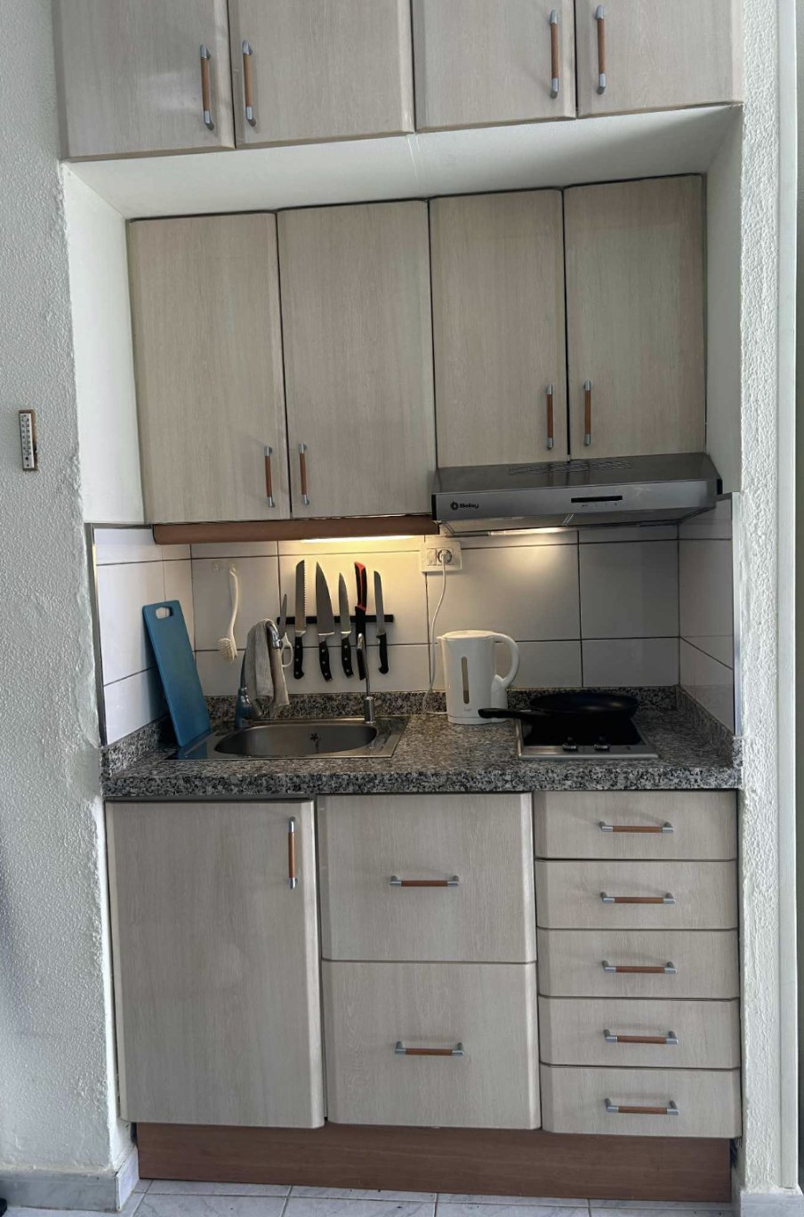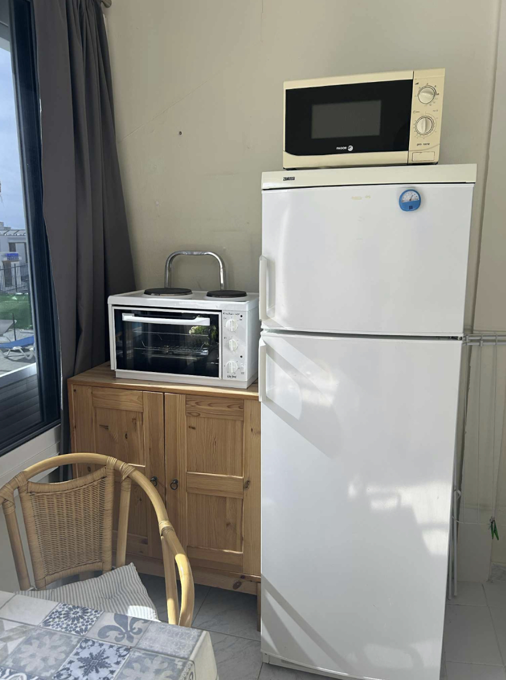 – Kjøkkenet har liten stekeovn, to separate kokeplater, mikrobølgeovn og kjøleskap med frysedel