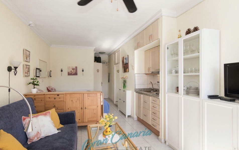 Pen og praktisk studioleilighet beliggende i Puerto Sol-komplekset i en rolig blindgate i nedre del av Puerto Rico. Kort avstand til stranden og sentrum med alt av fasiliteter. Det finnes en liten matbutikk i nabokomplekset.